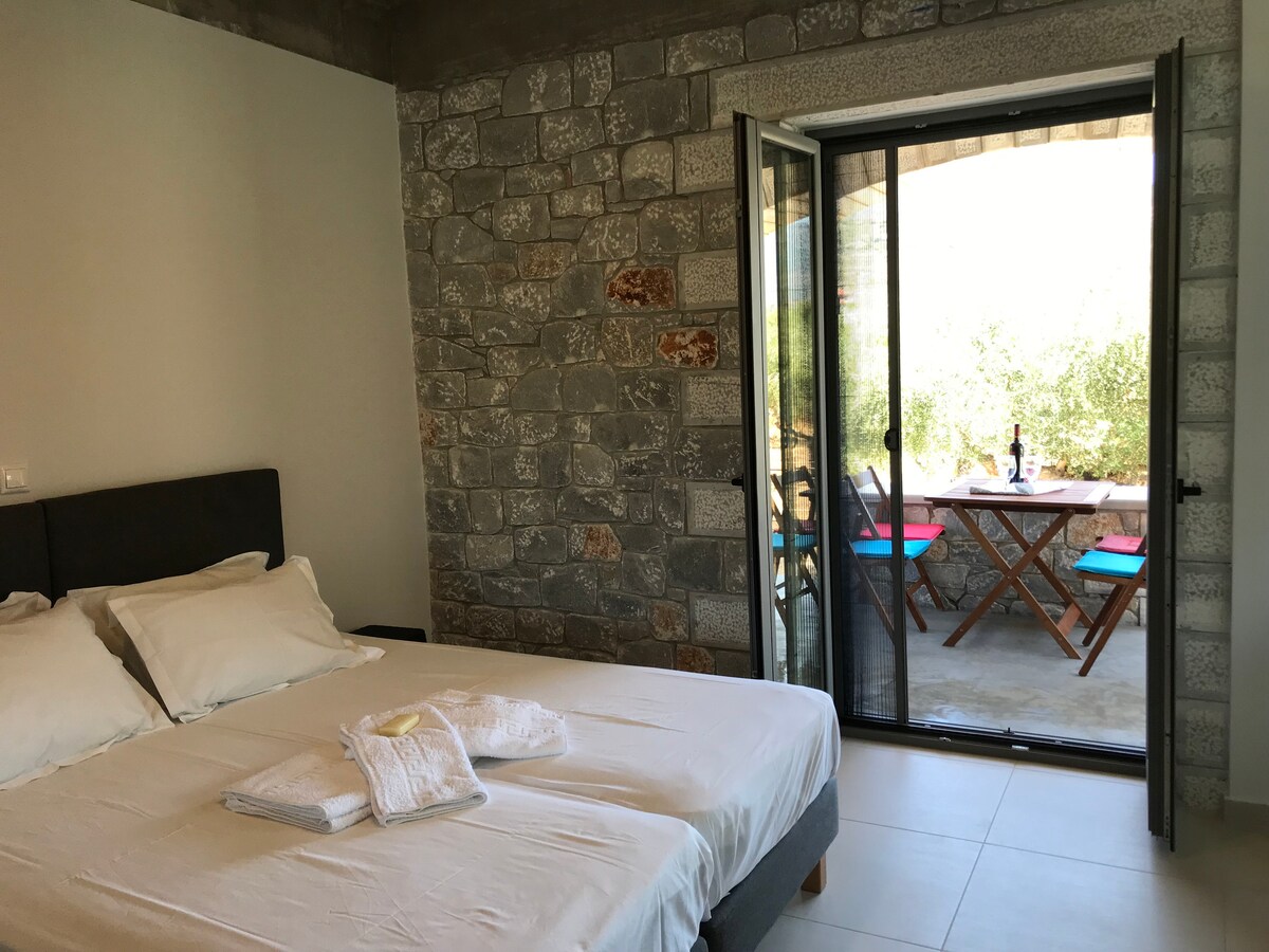 Nuestra casa de piedra de dos plantas, con vistas únicas al mar y rodeada de olivos, está aquí para darte la bienvenida. Situada justo después del pueblo pesquero de San Nicolás, es un lugar ideal para relajarse lejos del ruido. Junto a los principales destinos como Kardamyli, Stupa, las cuevas de Diros, Gythio, Monemvasia e incluso Mystras para aquellos a los que les gusta conducir entre las hermosas montañas de la montaña Tayghetos. Te aconsejaremos sobre muchos más lugares increíbles que no te puedes perder. Consigue también nuestras bicicletas y monta a lo largo del mar también.