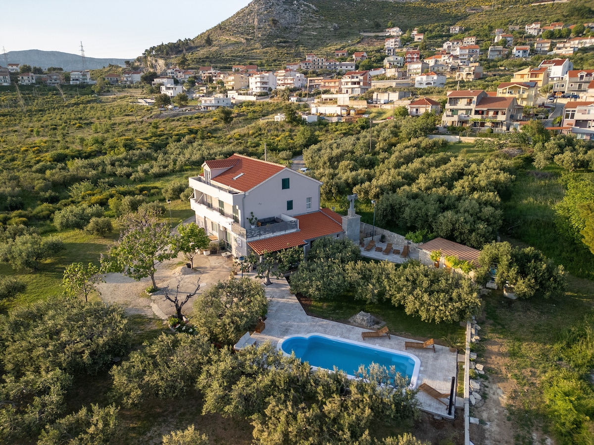 Bienvenido a nuestra nueva villa X, que se encuentra en la cima de una colina tranquila con vistas a la cercana ciudad de Split, el mar y las islas. La villa consta de 3 dormitorios, dos con camas dobles y uno con 2 camas individuales, 4 baños y una cocina increíblemente grande donde puedes preparar cualquier comida de tus sueños :) Estamos muy orgullosos de nuestra terraza con piscina climatizada que tiene vistas al mar, las islas, las ciudades y pueblos cercanos y la ciudad más grande de Dalmacia: Split. Estamos deseando ser tus anfitriones :)