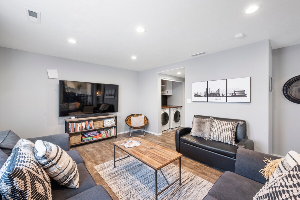 Perfecta para todos aquellos que disfrutan de un hermoso espacio para relajarse y descansar, esta elegante casa se encuentra en el nuevo barrio de Bluegrass en el norte de Spokane. Se encuentra a pocos kilómetros de todo lo que puedas desear: restaurantes, tiendas, parques y entretenimiento, pero está escondida en medio de tranquilas calles y aceras arboladas. Este alojamiento está anunciado dos veces en Airbnb. Esta es la configuración más pequeña con capacidad para un máximo de 5 personas. ¡No es un espacio compartido! ¡Encuentra el anuncio «Todo el alojamiento» y podemos hospedar hasta 8 personas!