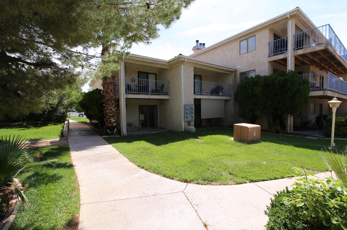 Este acogedor condominio está completamente renovado, cómodo, limpio y convenientemente ubicado en Amira Resort, que tiene todo lo necesario para una estancia relajante. Puede dormir 2 en este condominio estudio con entrada privada y patio. Excelente ubicación cerca de todas las comodidades del complejo, incluidas dos piscinas climatizadas, jacuzzi, canchas deportivas y gimnasio. El refugio perfecto para explorar St. George, Zion National Park, Snow Canyon, Tuacahn, Sand Hollow y ubicado a 5 millas de 7 campos de golf.