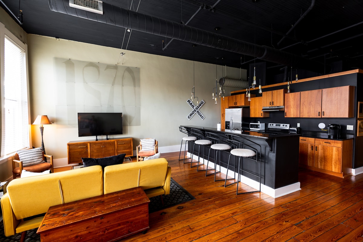 Este loft único es un paso atrás en la historia de la calle comercial, el ferrocarril y la cultura de North Springfield con todas las comodidades modernas que puedas necesitar. El loft muestra varias fotos de Commercial Street a medida que ha evolucionado con el tiempo e incorpora características representativas en el diseño. ¡Su céntrica ubicación y sus grandes ventanales con vistas a la calle ofrecen a los huéspedes una auténtica experiencia de loft en el centro de la ciudad!