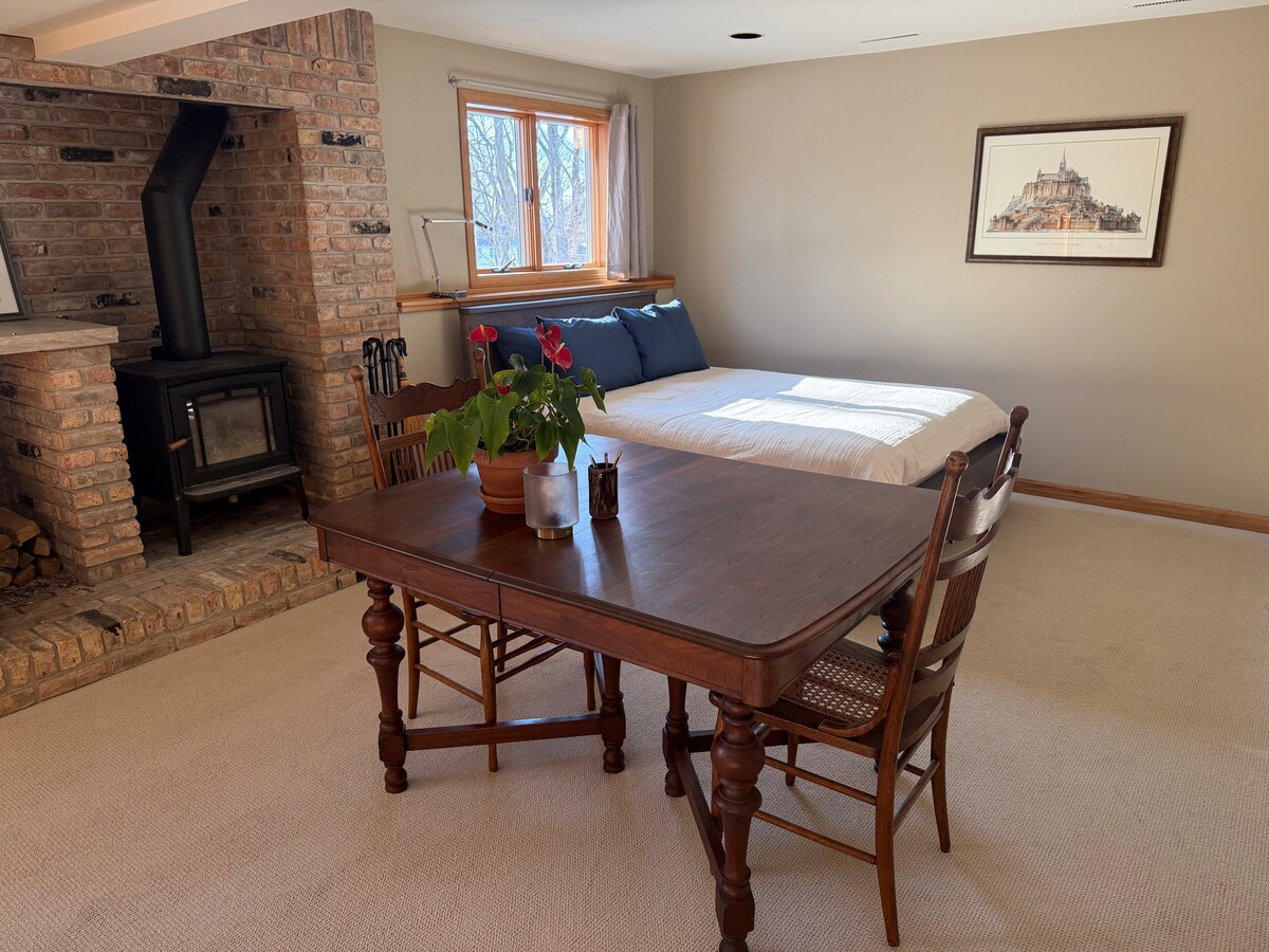 Este estudio diseñado por un arquitecto está bañado por luz natural, con tragaluces y un rincón para desayunar con una ventana envolvente. Con un baño de lujo con ducha a ras de suelo, este cómodo espacio cuenta con todos los servicios perfectos para una escapada rápida de fin de semana o un viaje de negocios de una semana. El estudio está al lado de una casa y sube un tramo de escaleras a través de una entrada exterior independiente. Situado justo al final de la colina, a 5 minutos a pie del centro de Middleton y a 15 minutos en coche de la Universidad de Wisconsin y del centro de Madison.