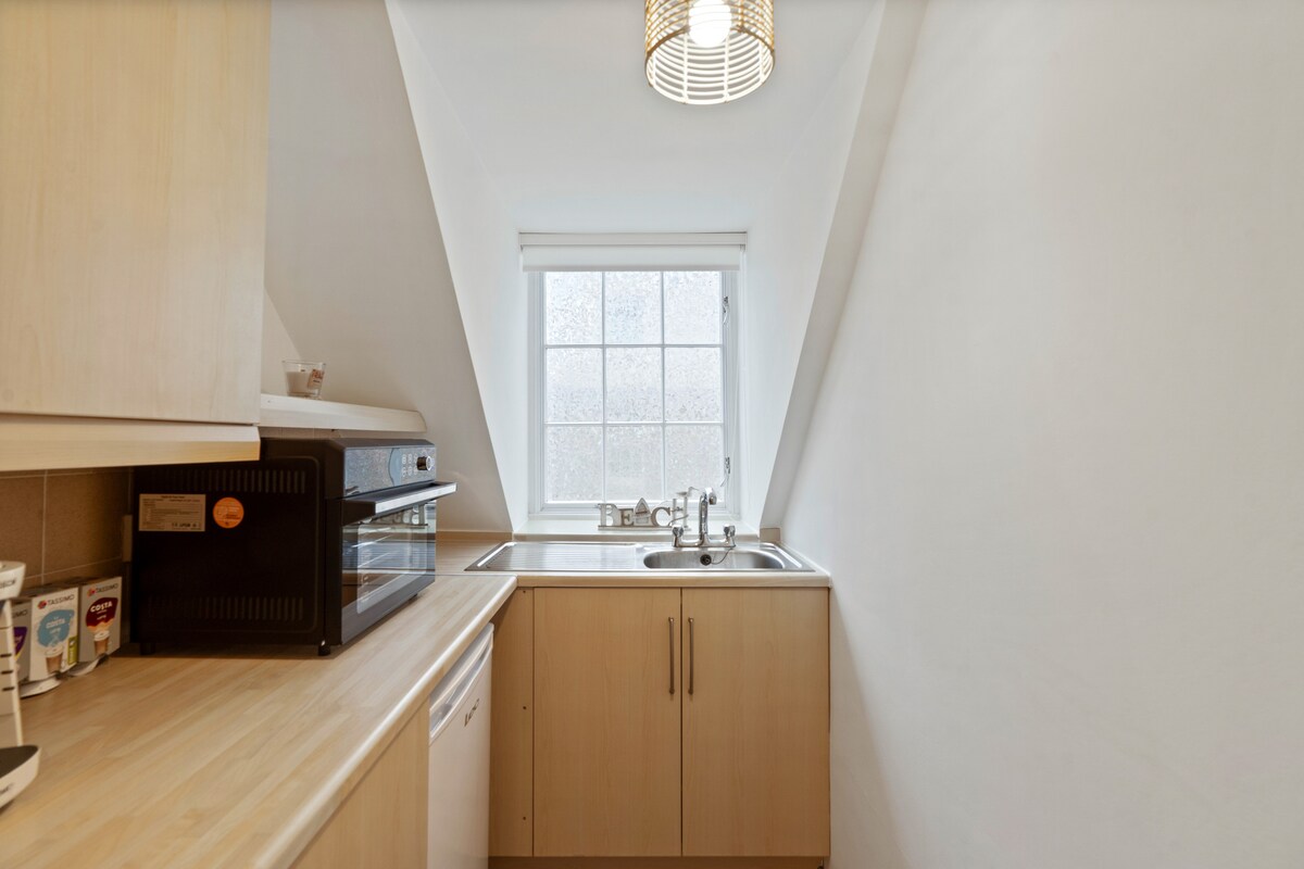 🌊 THE PARSONAGE - Seaside 2-Bed in St Aubin Steps from Beach & Dining! Enjoy a bright top-floor accommodation with sea views. 2 bedrooms, bathroom, and kitchen. Just 1 minute from the beach, restaurants, and the harbour, with a bus stop outside for exploring the island. Perfect for couples. Ideal base to relax by the sea, wander the lanes. There are 2 double bedrooms, kitchen and shower room on the top floor of a house. No lounge. Not great for small children or large cases. Narrow Stairs