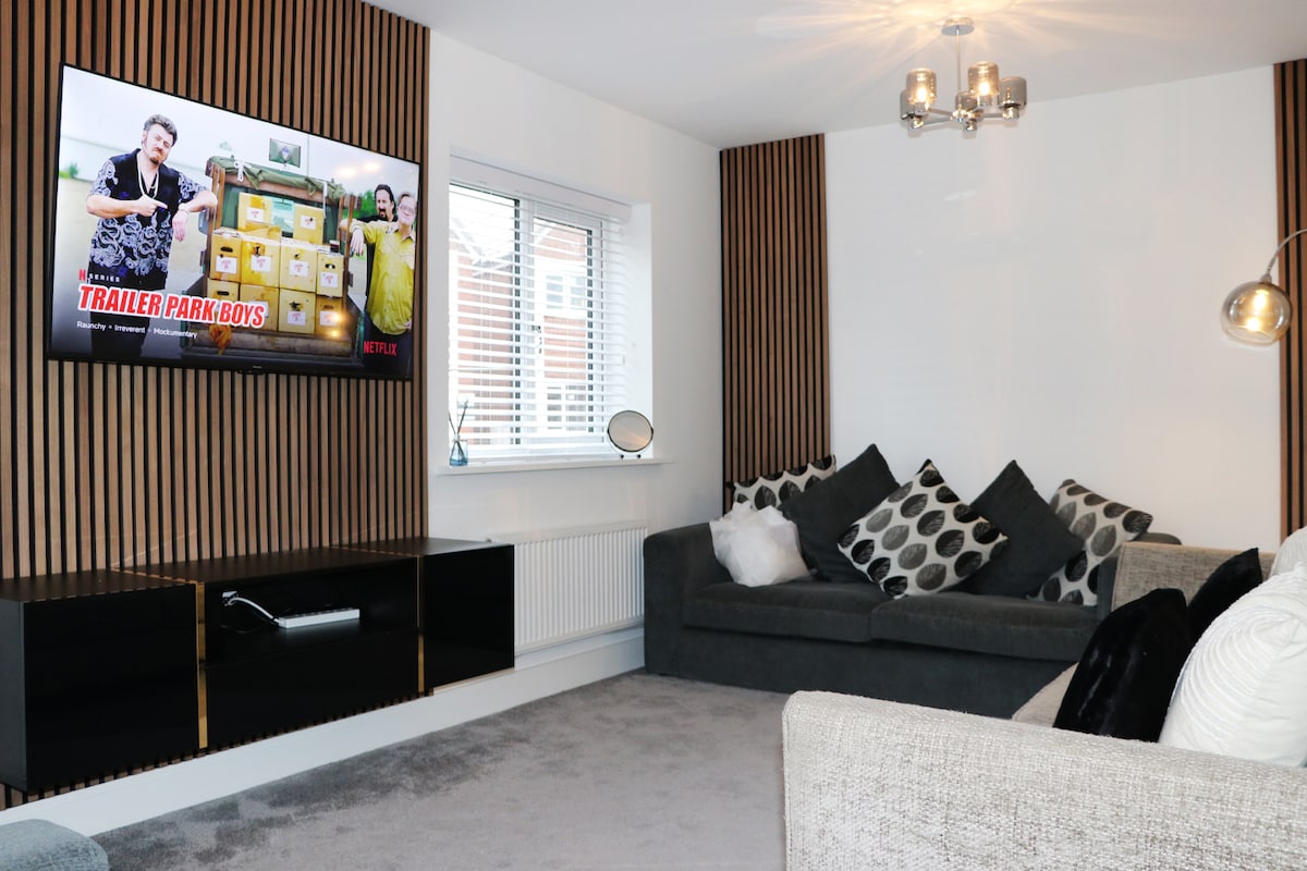 Nuestra casa de dos dormitorios recién construida, lejos de casa, con un amplio jardín trasero, está estratégicamente anidada en un barrio tranquilo y sereno en Wednesbury. Se encuentra a poca distancia a pie de la biblioteca local, la zona comercial y el parque familiar, y está muy cerca de un servicio de autobús fiable a West Bromwich, Birmingham City Centre, la Universidad de Birmingham y West Midland Safari Park. Consulta la regla adicional n.º 3 antes de reservar.