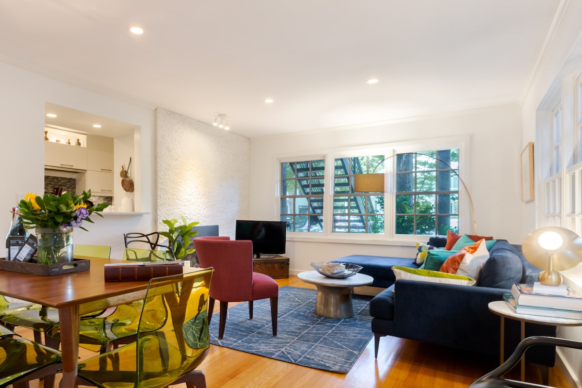 ¡Disfruta de una experiencia de lujo en este céntrico alojamiento! Esta luminosa joya moderna de mediados de siglo está remodelada con buen gusto con muebles escandinavos de alta gama (sofá BoConcept, alfombra, muebles de pared) y suelo de roble europeo. **El aire acondicionado mini split se instalará en julio de 2023.** Cuenta con una amplia zona común para que las familias se relajen, una cocina completa, 3 camas tamaño queen, 2 baños y wifi rápido (>200 Mbps). Go0gle/Stanford está a 5-10 minutos en coche y las tiendas de comestibles/cafeterías locales (Peet's) están a poca distancia a pie.