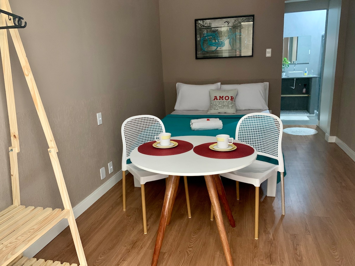 Acogedora suite para parejas, a 100 metros de la playa de Jacarecica y a 2 km del parque comercial. Decoración nueva y moderna. Tiene una cocina al aire libre con encimera. Hay opciones de comestibles, panaderías y farmacias muy cerca y un gimnasio completo compartido de lunes a viernes, ubicado en la parte superior de la suite.