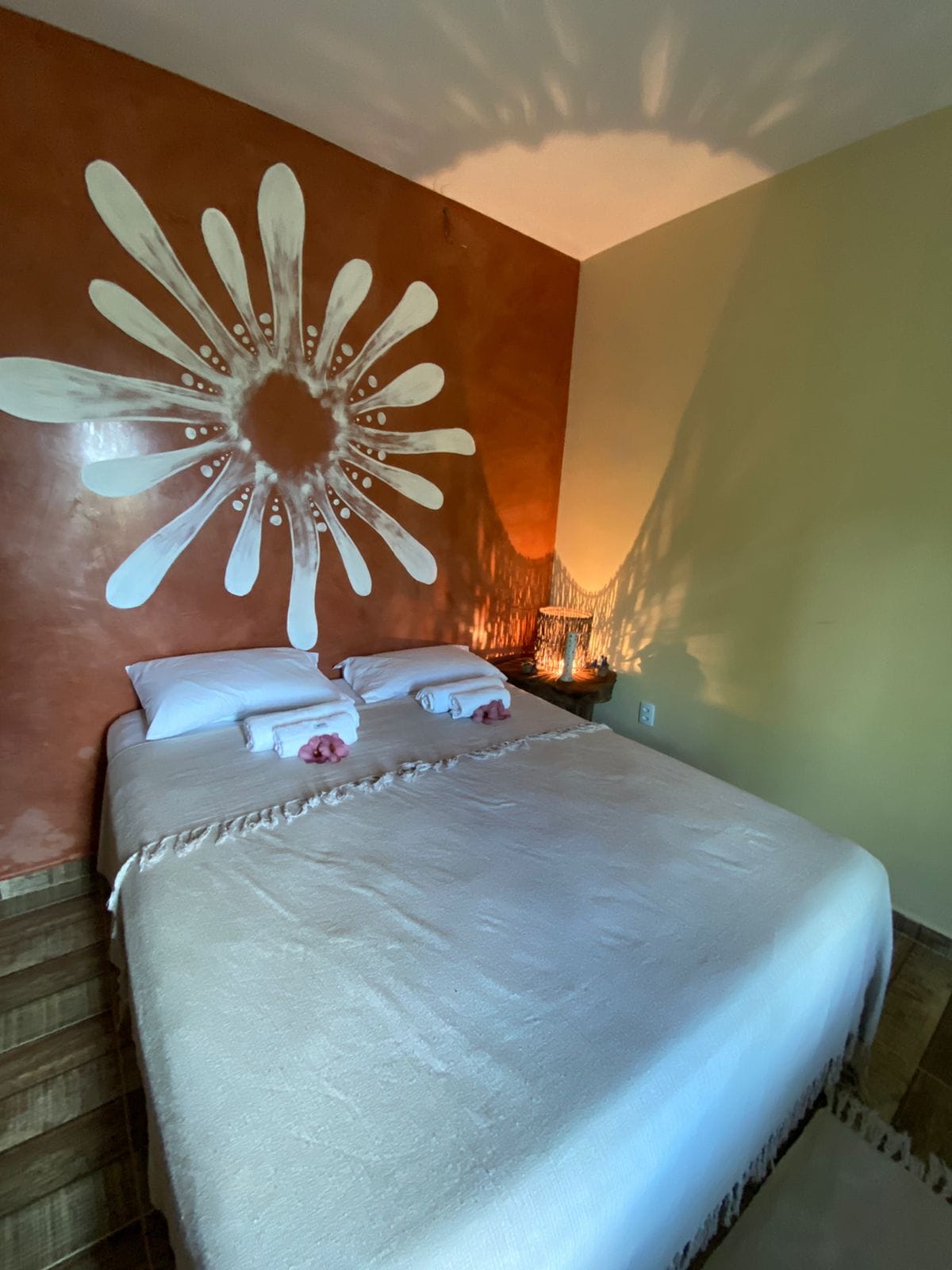 LA GUARIDA del CANGREJO, ubicada a 120 metros de la paradisíaca Praia do Patacho, es una pequeña villa, formada por la casa GUAIAMUM, Chalet ARATU, Suite MARIA FARINHA y Suite SIRI, todas con entradas, jardines y balcones independientes. MARIA FARINHA, muy luminosa, ventilada, con un delicioso balcón. Cuenta con aire acondicionado, camas dobles o individuales, tiene una pequeña cocina, totalmente equipada. Nuestros huéspedes también disfrutan de la piscina y los quioscos, rodeados de nuestro agradable jardín