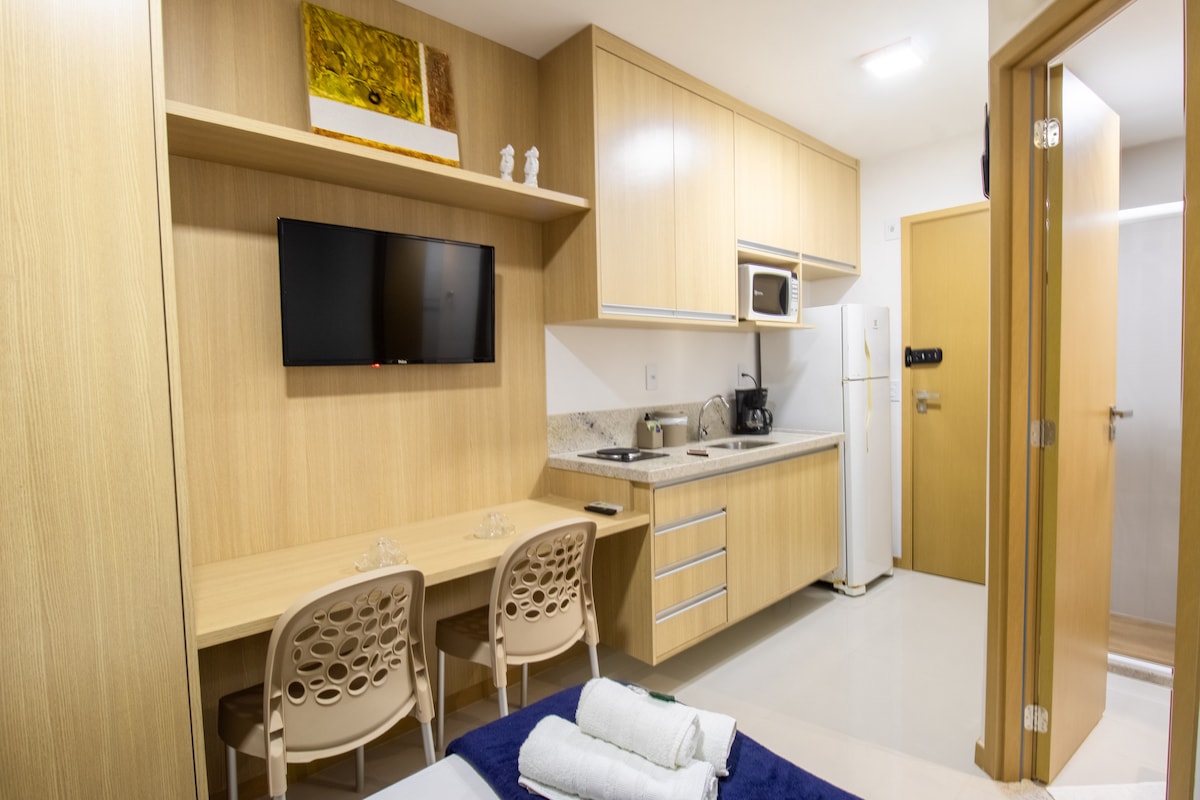 El Aparthotel Astron dispone de apartamentos equipados con cocina, minibar, microondas, fregadero y placa de inducción para que te sientas como en casa durante tu viaje de negocios o de placer. El apartotel en Salvador se encuentra frente a Salvador Shopping y cerca de Shopping Sumaré, Shopping da Bahia, Teatro SESC y centros de negocios. También tendrás fácil acceso en coche a las playas y lugares turísticos de Salvador, como Mercado Modelo, Elevador Lacerda, Pelourinho, Farol da Barra, entre otros.