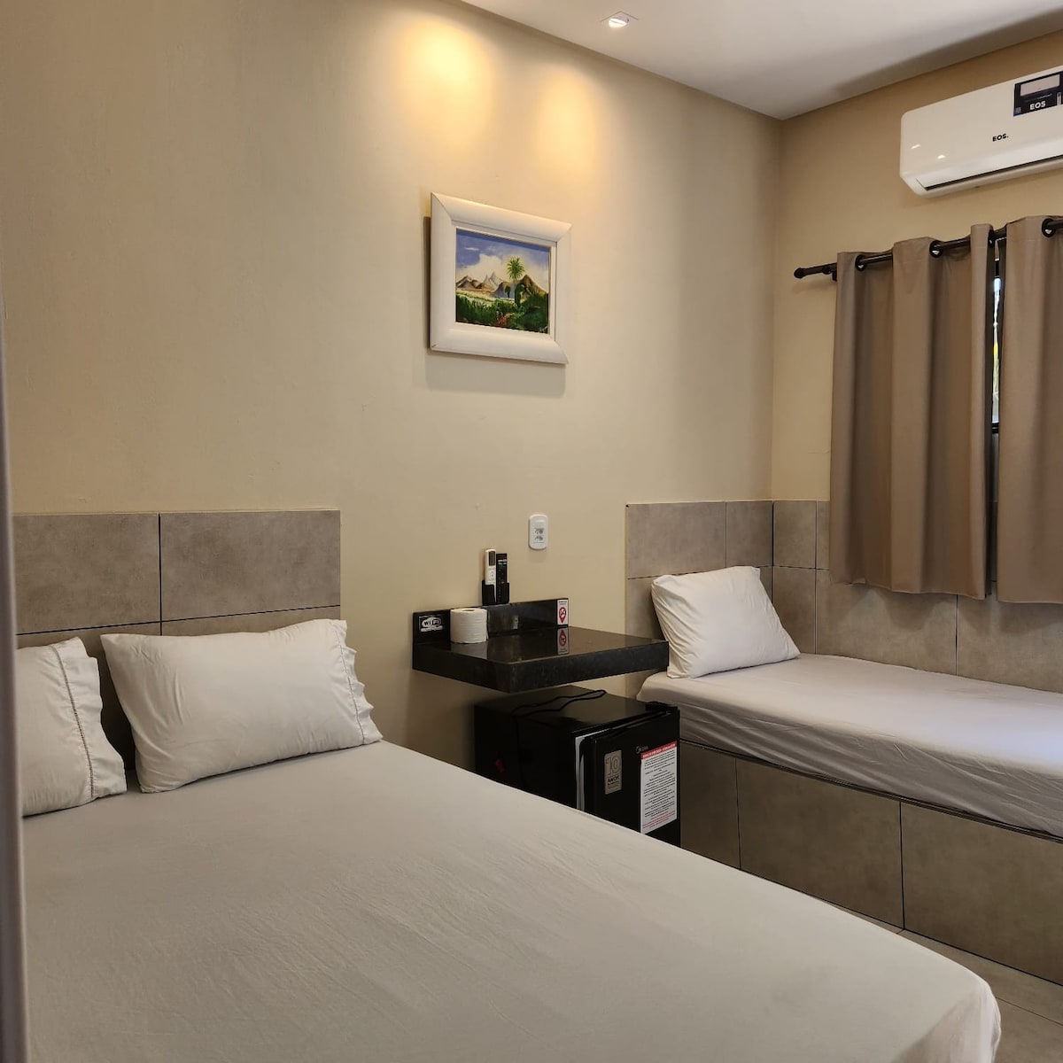 El edificio tiene 08 suites únicas que albergan hasta 3 personas cada una. # DESCRIPTION # * Un dormitorio (01 cama doble y 1 cama individual), TV(inteligente), minibar, aire acondicionado y almohadas y sábanas. * Baño grande (inodoro, lavabo, ducha eléctrica, espejo, etc.); * Internet de banda ancha (banda ancha) y estacionamiento vigilado cerrado gratuito. 📢 IMPORTANTE SABERLO 👇 ⚠️No te permitimos recibir VISITAS a la habitación familiar, exclusivas para el descanso. - 🐾No aceptamos mascotas.