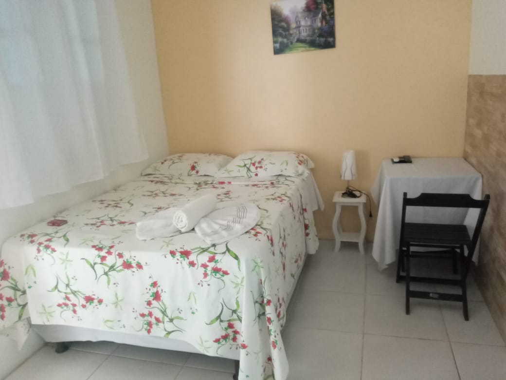 Localizado no melhor local no centro da cidade, em frente à uma praça com pizzarias, lojas, restaurantes e clínicas. Quarto suíte com frigobar, chuveiro elétrico, mesa com cadeiras, ar-condicionado, circuito de câmeras, super espaçoso com camas confortáveis (uma solteiro e uma casal), podendo ter colchão extra caso não queira compartilhar a cama de casal. Você terá acesso direto ao quarto, que fica no corredor do prédio, no primeiro andar.