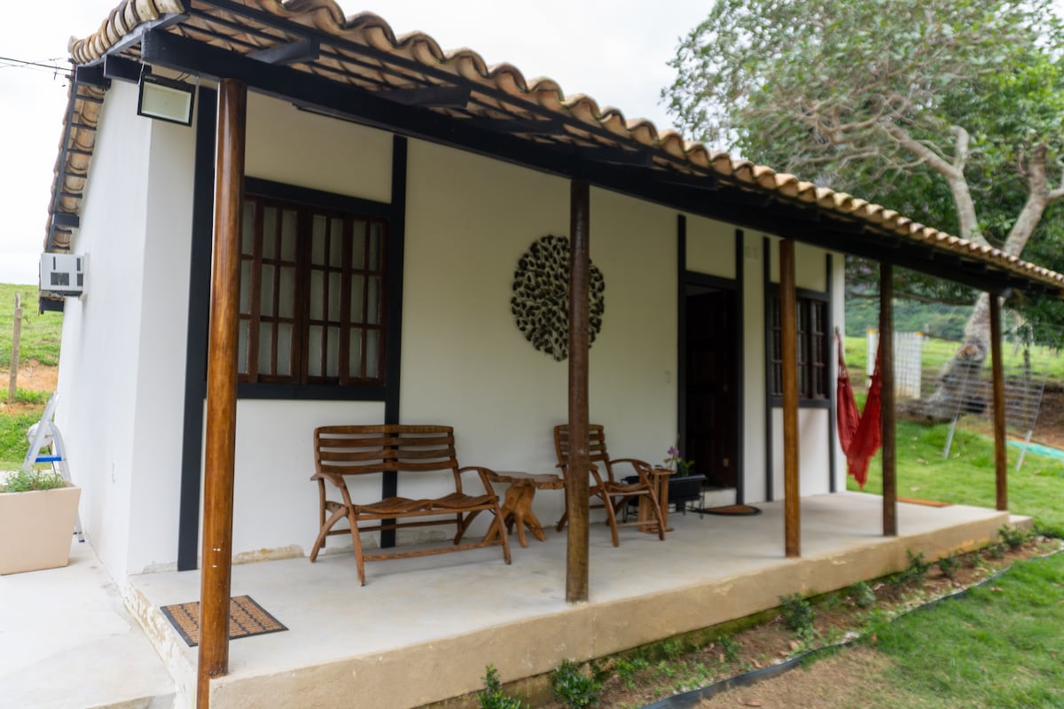 Escápate a un chalet romántico en el interior de Río de Janeiro, a 1 hora de Campos dos Goytacazes y Macaé. Rodeado de bosque nativo, el refugio ofrece una cascada, perfecta para bucear, hacer pícnics y barbacoas al aire libre. Con vistas al monolito de Pedra Branca, el espacio fue diseñado para parejas que buscan tranquilidad, comodidad y conexión con la naturaleza. Condicionamiento Jacuzzi Cocina completa con electrodomésticos y copas de vino Acogedora cama doble Hamaca para relajarse con vistas Elementos básicos
