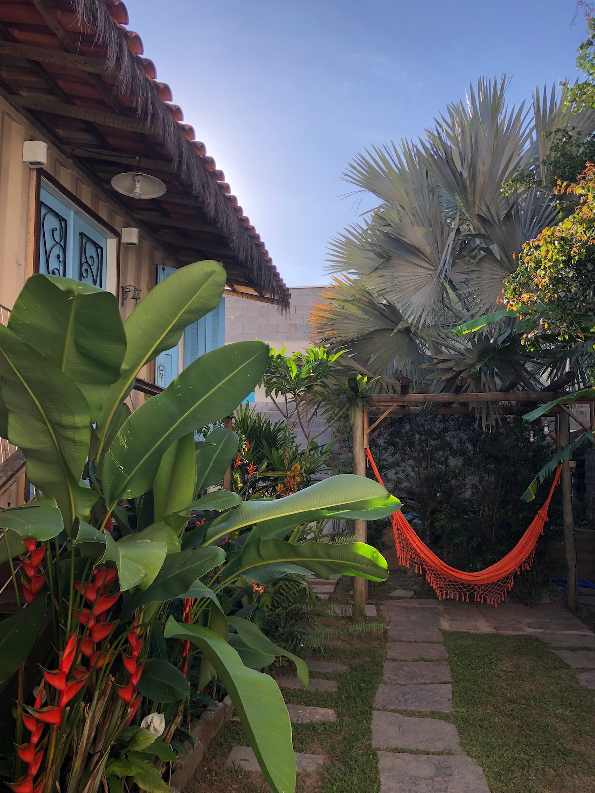 Nuestra suite en propiedad compartida es muy cómoda y está bien equipada. Cuenta con cocina, TV con Chromecast, ventilador, aire acondicionado, armario, ropa de cama y toallas, sillas de playa, nevera y sombrilla. Tiene balcón privado con hamaca, mesa y sofá. En la propiedad hay ducha, terraza, lavandería, jardín y espacio para Luau compartido. Estamos a 800 m de la playa de Lagoinha y a 300 m de las ruinas y cascadas. Hay restaurantes, heladerías y supermercados cerca.