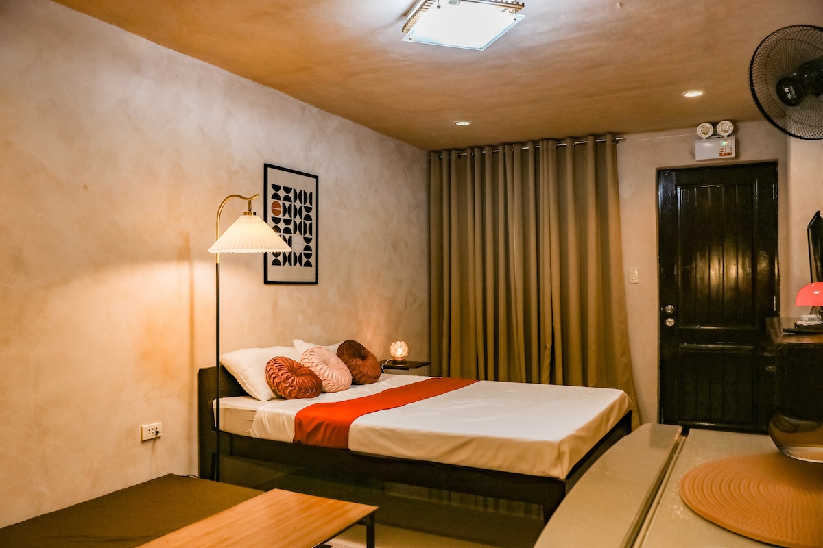 Tastefully decorated studio ~300 m to the favorite quieter part of WHITE BEACH with popular restaurants/pubs. The building is well maintained and compliant with 24 h electricity and security (CCTV). Studio surrounded by tropical greenery located on lower ground floor with cooler air and privacy. Many amenities: Air-con, fan, high speed WiFi, safe, fridge, stove, coffeemaker, minioven, dishes, cookingware, digital blood pressure apparatus and automatic washing machine