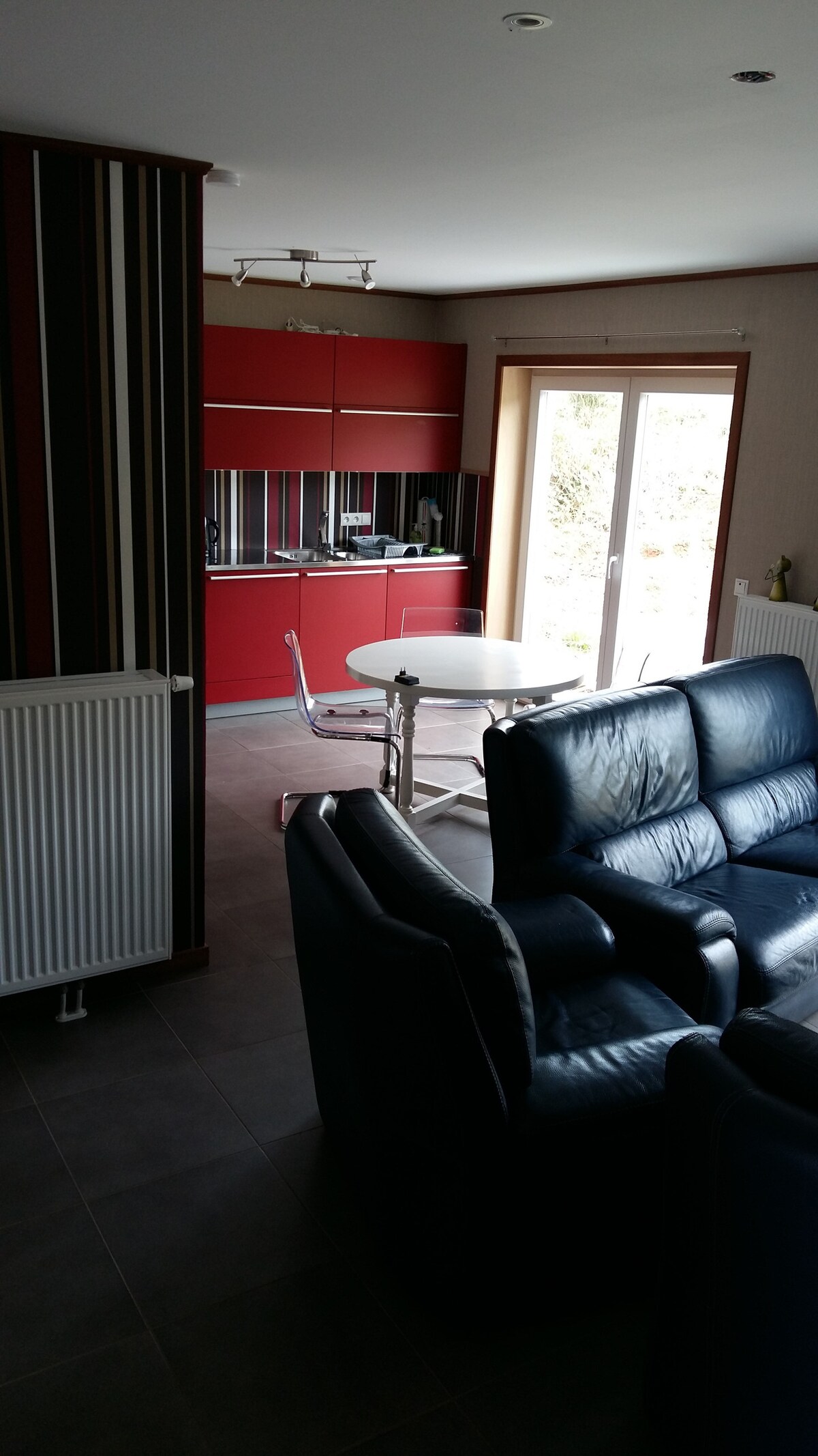 Bonjour Chers Voyageurs Nous proposons un appartement confortable, entièrement rénové à neuf, moderne, très bien équipé, situé à la campagne avec de nombreuses possibilités de promenades bucoliques. Vue agréable de la terrasse, accès privatif, parking privé Gratuit pour deux véhicules où plus si vous attendez des visiteurs. Calme silencieux la nuit, la nature à portée de vues tout autour, une Boulangerie " Rechter Backstube" 10 minutes en voiture, une supérette, un marchand de vin.