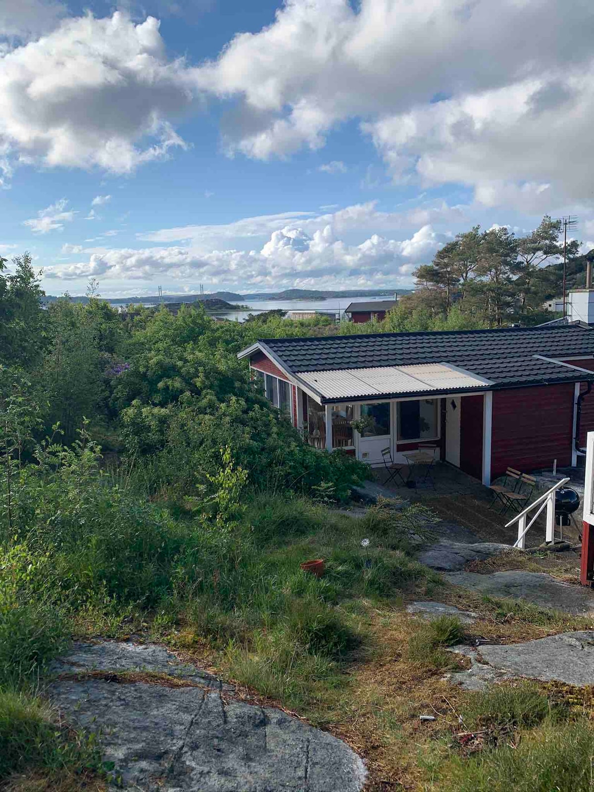 Idílica cabaña sueca a 550 m del mar, rodeada de naturaleza y última casa en una carretera de poco tráfico. Zona acogedora, jardín privado y a poca distancia a pie de la playa y el muelle. Un lugar perfecto para relajarse, disfrutar de barbacoas familiares o de las celebraciones tradicionales de verano. Cerca de la playa de la ciudad de Svanesund con sauna, fiesta de solsticio de verano y muelle para barcos; tiendas de comestibles cerca. Recoge bayas y setas por el camino. El ferry te conecta con el continente y Gotemburgo. Willkommen/Welkom/Välkommen al auténtico encanto sueco.