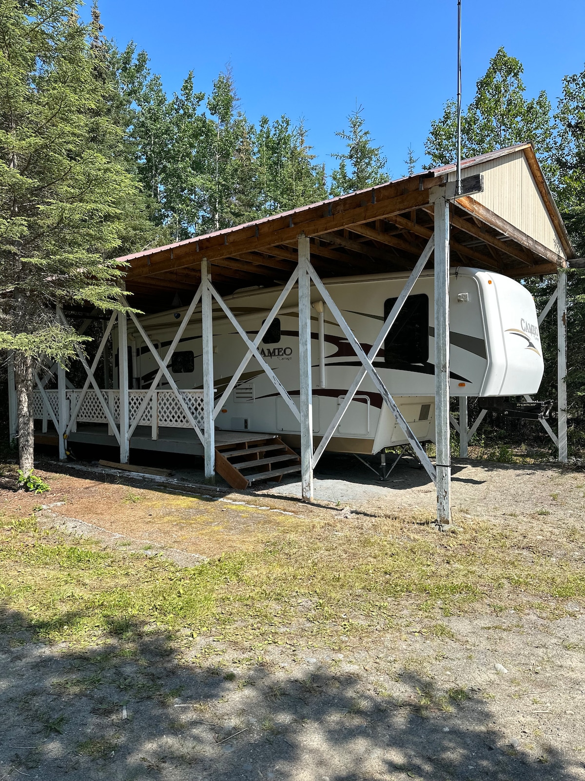 Disfruta de la comodidad de estar cerca del río Kenai, el río Moose y varios lagos circundantes. Este remolque de quinta rueda cubierto totalmente equipado cuenta con todas las comodidades de casa y tiene capacidad para 3-4 personas. Está conectado a la energía de la costa, el agua y el alcantarillado. Cuenta con todos los servicios necesarios para cocinar en el fogón y el horno y cuenta con nevera/congelador. Aproximadamente a 1 hora y 45 minutos de Seward. Aproximadamente 1 hora y 30 minutos hasta Homer Aproximadamente 2 horas y 20 minutos hasta Anchorage