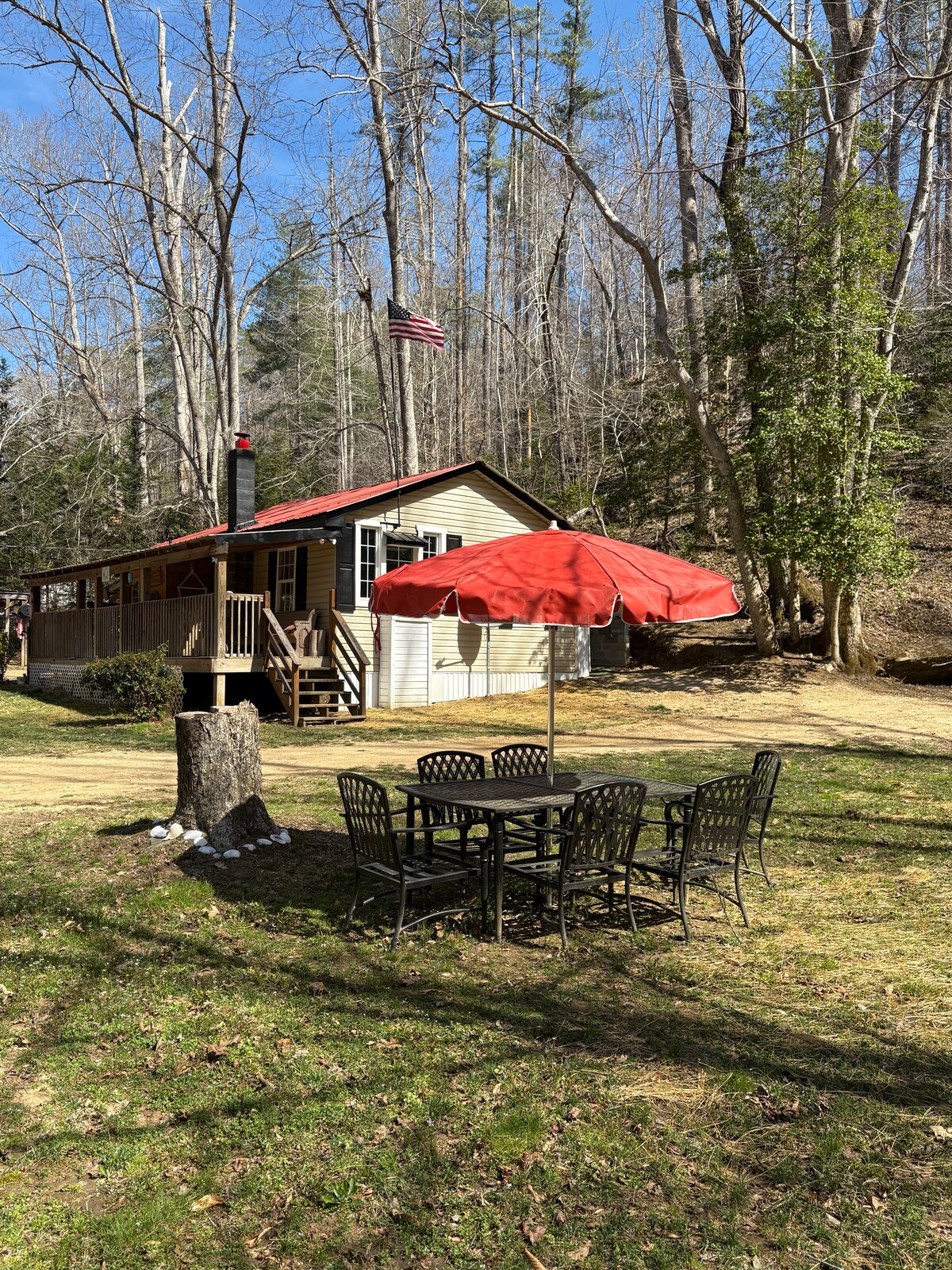 ⭐️PLEASE READ BEFORE BOOKING!⭐️ Take a break, where nature & peace surrounds you. Build a fire, watch the wildlife, walk to the creek, or relax! Limited power provided by solar. There is heat in the cabin! Outdoor shower winterized(not available until April 15th and we have rain)Outhouse bathroom, charcoal grill, & bistro table that provides a wonderful place to unwind! No running water inside, 5gallon jug provided. (No AC/full power without generator. Bring your own or rent one for a small fee)