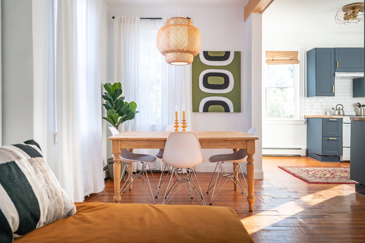 ¡Porche delantero y trasero, vistas al río, amplias salas de estar, cocina nueva y fresca y *dos* baños hacen de este apartamento el mejor lugar de aterrizaje para unas divertidas vacaciones! Situado en una calle llena de intrincadas casas históricas, este apartamento de la primera planta ofrece una escapada accesible y cómoda. Un gran patio trasero se comparte con otros huéspedes y las amplias vistas al río están a solo unos pasos de la puerta principal. ¡Entrada privada, además de fácil aparcamiento y un cargador de coches eléctricos si lo necesitas!