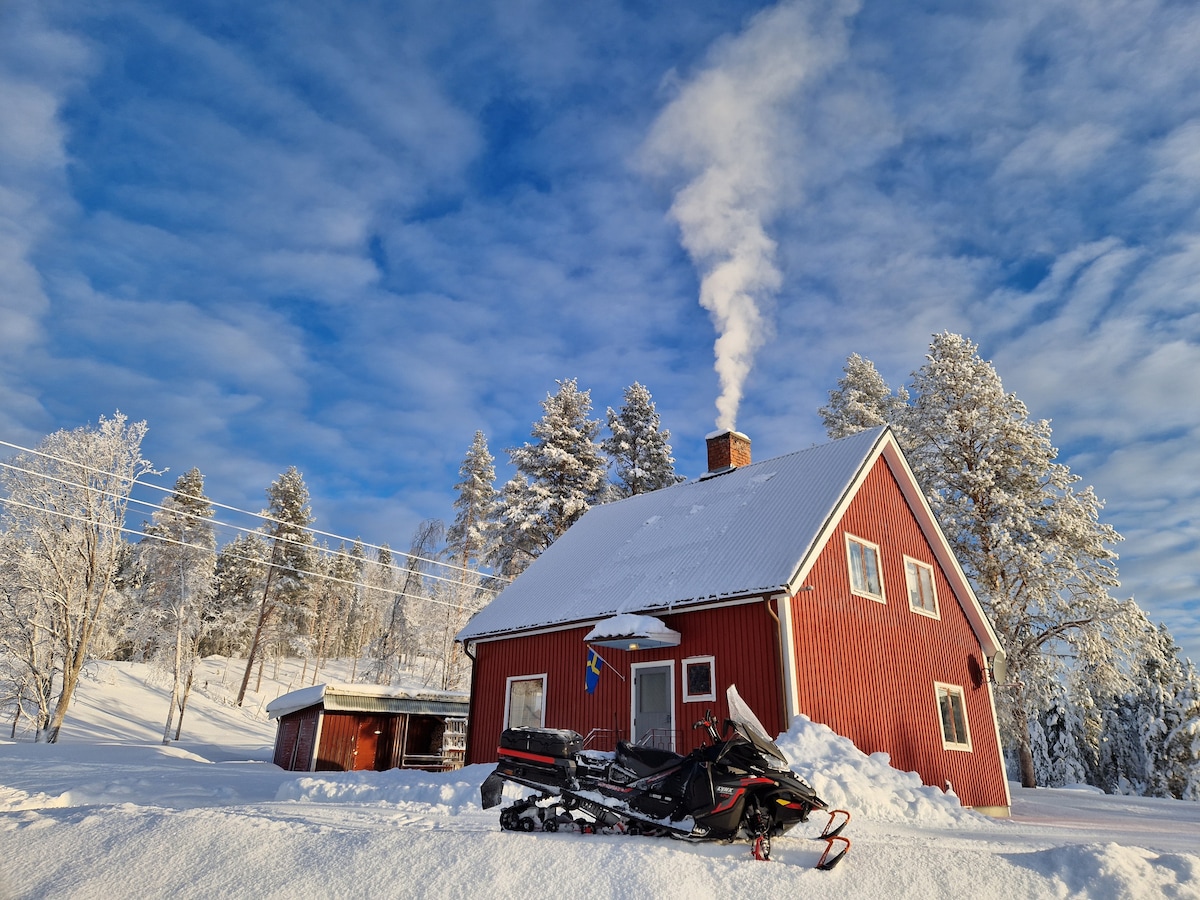¡Te damos la bienvenida a tu retiro en Laponia en Slussfors! Disfruta de la magia de este santuario de 80 metros cuadrados con 2 dormitorios, una cocina totalmente equipada y una sala de estar con chimenea. Ideal para noches acogedoras rodeada de la belleza de Laponia, es un paraíso para los amantes de la naturaleza: pesca, esquí, discgolf, senderismo, bayas y recolección de setas. Perfecto para una escapada vacacional o para pasar por el área. La casa tiene un gran césped y ofrece varios lugares de estacionamiento. En el pueblo Slussfors, tenemos una tienda muy bonita.