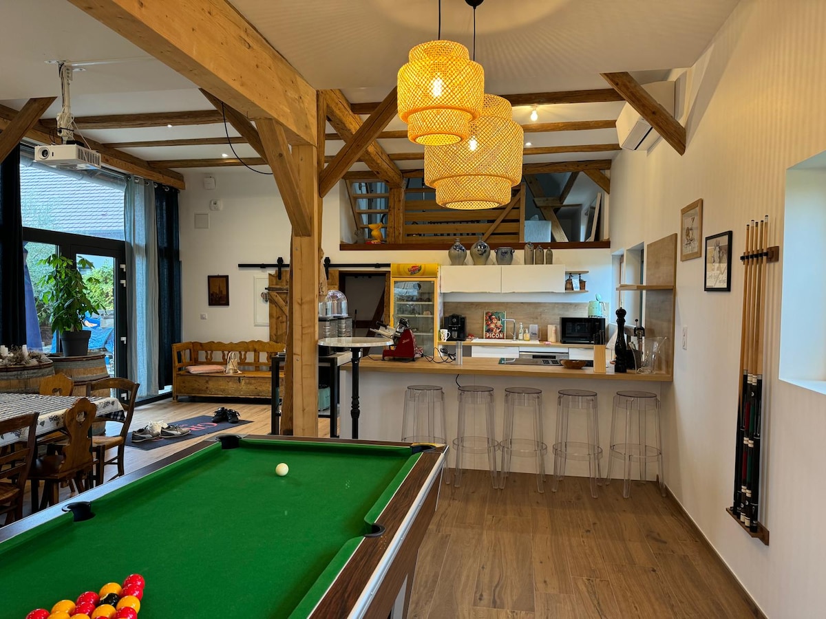 🏡 Le Refuge du 55 – Granero renovado con encanto y amabilidad en Epfig ¡Bienvenido a este granero renovado, ubicado en un patio arbolado en el corazón de Epfig, ideal para una estancia EN FAMILIA o ENTRE AMIGOS! Disfrute de un alojamiento amplio y cálido para sus eventos, que combina el encanto de lo antiguo con comodidades modernas: billar, proyector de vídeo, cocina equipada con tirador de cerveza, zona de comedor para grandes mesas, zona de relajación junto al fuego y altillo acogedor...