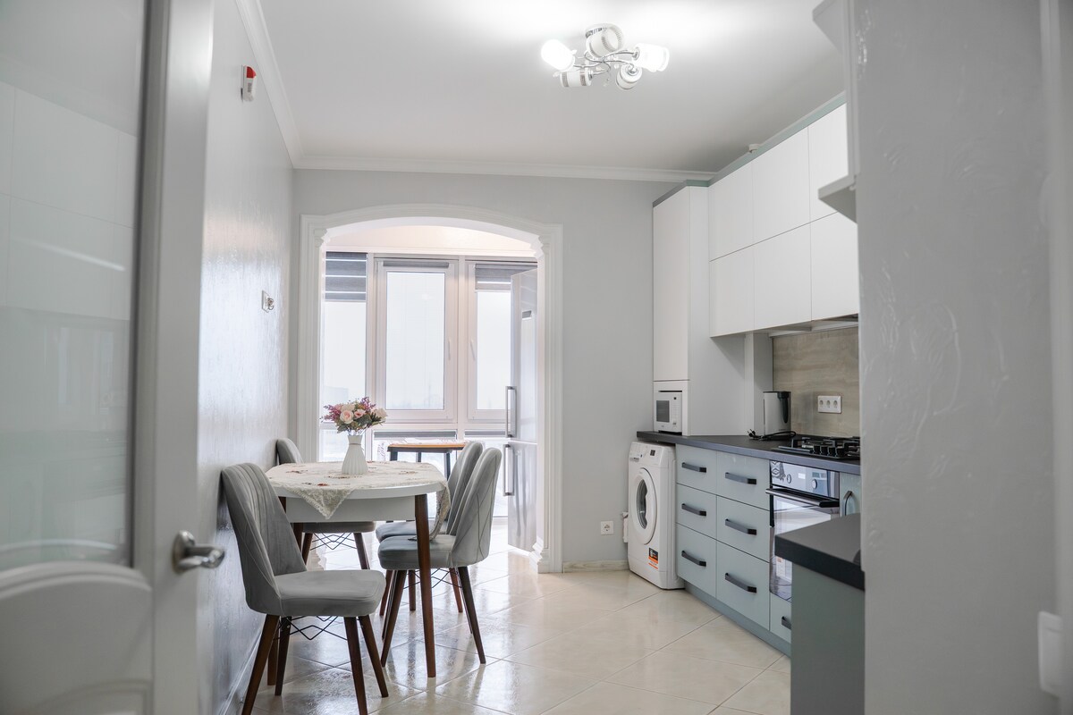 Stylish wine-themed apartment in the suburbs of Chișinău (≈20 min to the city center) with 24/7 self check-in via smart lock. - New building, freshly renovated. - Home cinema: projector with big screen, karaoke, PlayStation 5. - Collection of 80+ wine bottles from 20 brands and family wineries — tasting and purchase at market price. - Air conditioning and heating. - Fully equipped kitchen and washer-dryer. - Suitable for short and long stays, up to 4 guests. - Free street parking