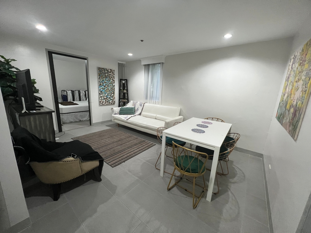 Estudio en el segundo piso con patio sobre la piscina, paquete de Internet ejecutivo, TV Samsung Smart 4K de 55 pulgadas, cocina totalmente equipada con utensilios de cocina, utensilios y cubiertos nuevos. Nueva cafetera de goteo, microondas. Una unidad para no fumadores con balcón con vistas a la zona de la piscina. La Grande Residence se ha convertido en la mejor opción tanto para viajeros de negocios como para turistas que visitan Clark Freeport y la zona de Pampanga. Relájate y desconecta en este alojamiento tranquilo, seguro y elegante.