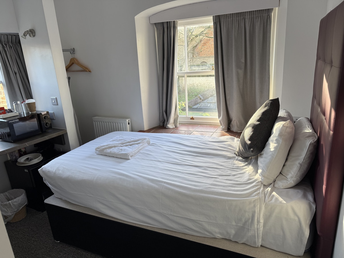 Nuestra habitación doble pequeña es un espacio compacto y elegante ideal para viajeros solos o parejas que buscan comodidad y valor. La habitación cuenta con una pequeña cama doble con ropa de cama de primera calidad, un televisor de pantalla plana con Netflix y una cafetera Nespresso con una selección de cápsulas de café para empezar bien el día.