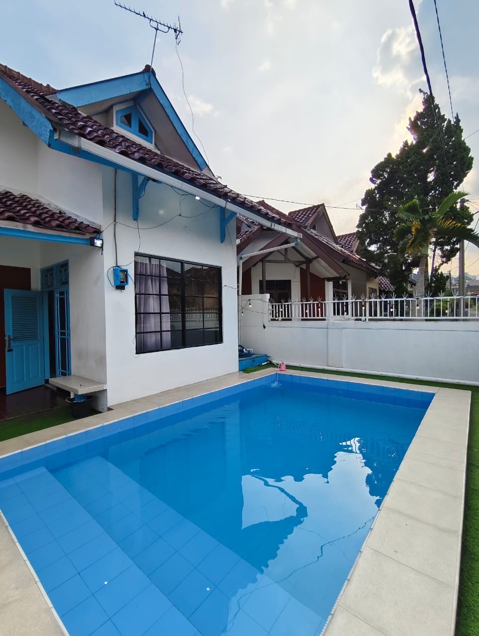 WHY BOOK THIS VILLA? + Indoor Pool! + Spacious villa with a comfortable central living area + Relaxed TV lounge on the 2nd floor +7 bedrooms with different sizes + Accommodates 20+ people + Enjoy the view of Mount Gede from the balcony & rooftop + Perfect for large families, reunions, or community events + Front garden for picnics (tables and benches available) + Plenty of nearby dining options + Clean and chilly fresh air! + Wifi! + Recently renovated, exceptionally clean