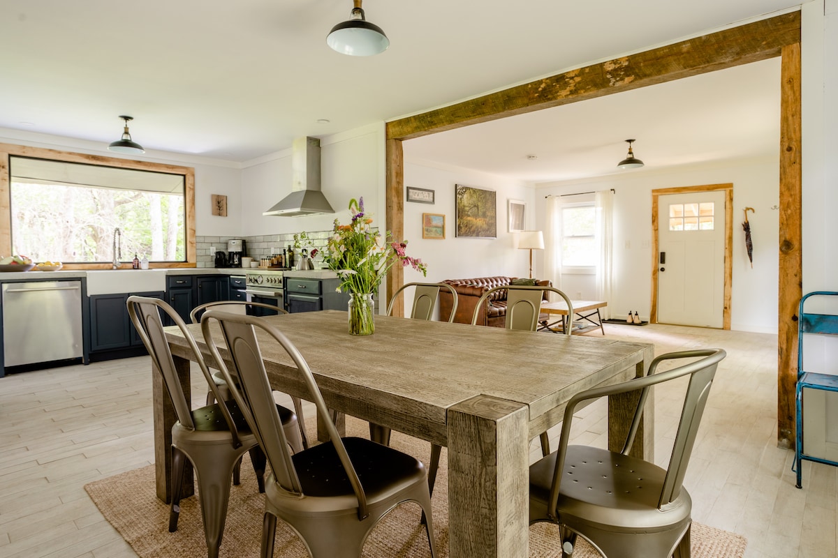 Relájate con amigos o familiares en esta acogedora casa de campo del siglo XIX actualizada, ubicada en 5 acres rodeados de pastos y bosques. Este es realmente un entorno rural para disfrutar de la serenidad de la naturaleza. Con una ubicación céntrica, un tranquilo paseo por el campo te llevará a pintorescos pueblos, espectaculares rutas de senderismo, restaurantes elegantes y mucho más. Visita nuestras numerosas cervecerías y destilerías o simplemente da un paseo y explora. Trae tus bicicletas y recorre las suavemente ondulantes carreteras arboladas… o no. Son tus vacaciones.
