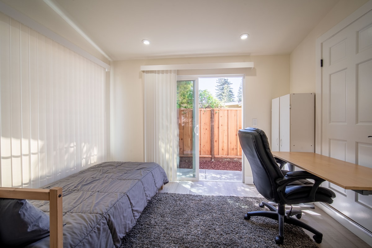 Habitación individual con vistas al jardín privado en Sunnyvale para viajes de negocios