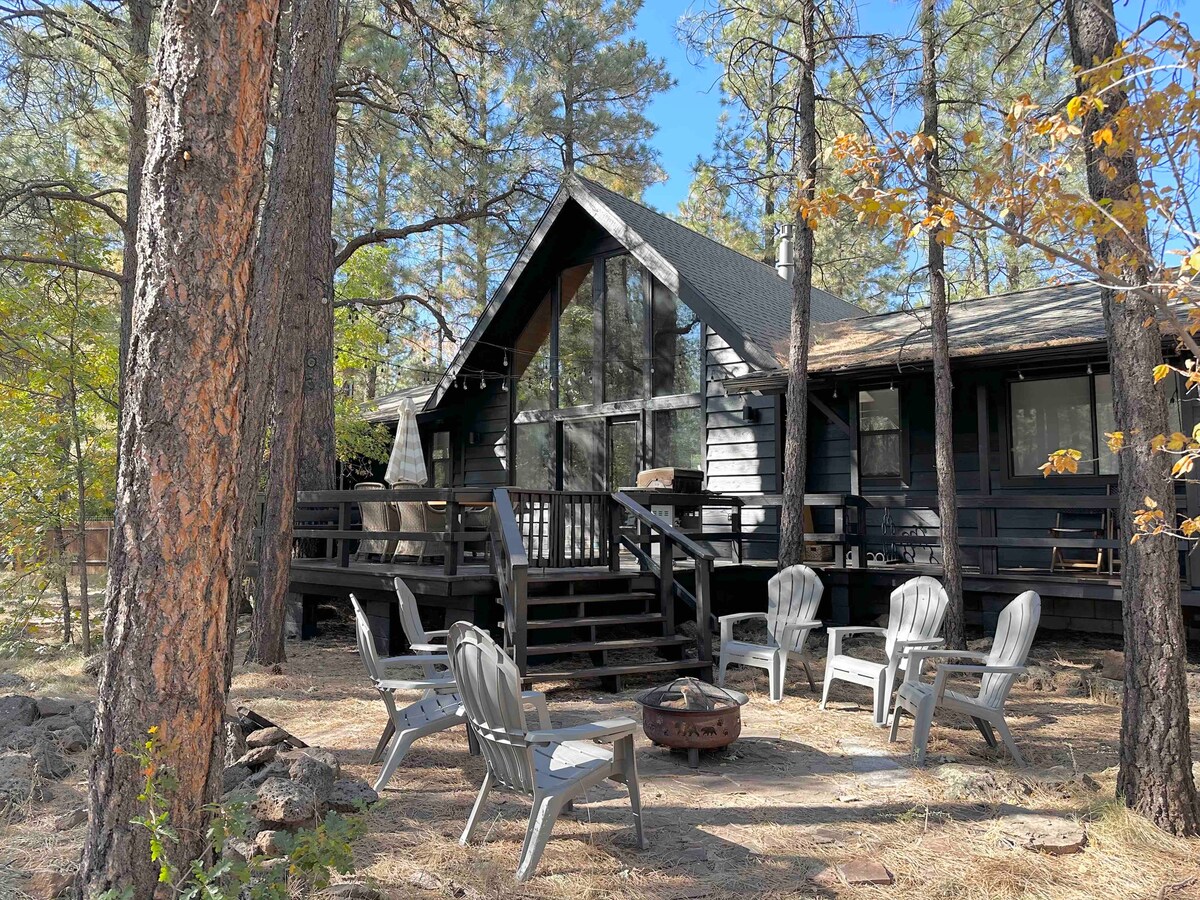 ¡Un paraíso de Pinetop perfecto para que tu familia y tus amigos disfruten! Ubicado entre los imponentes pinos ponderosos cerca del Pinetop Country Club, te invitamos a disfrutar de más de 1500 pies cuadrados de espacio habitable con capacidad para 12 de tus amigos y familiares más cercanos. Ya sea que estés disfrutando de la nueva cocina gourmet, el fuego crepitante o las múltiples terrazas al aire libre, ¡esperamos que nuestra cabaña sea una base hogareña y acogedora para que tú y tu familia creéis recuerdos duraderos! Síguenos en IG @aframeinthepines