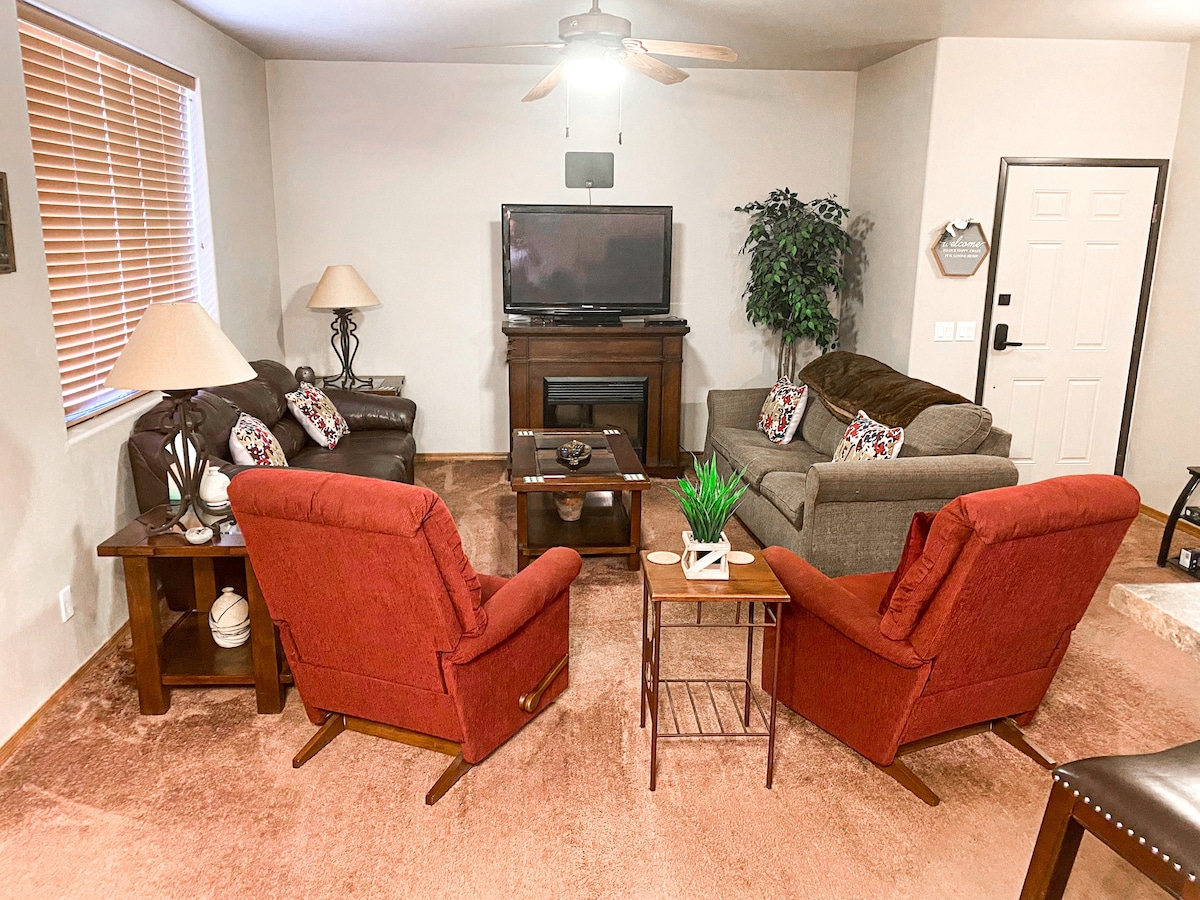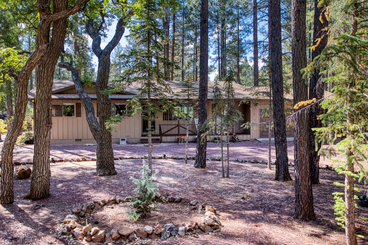 Escápate a los frescos pinos del norte de Arizona dentro del área del Pinetop Country Club en nuestro espacioso chalet apto para mascotas, perfecto para familias, grupos o parejas que buscan aventura y relajación. 🌲 2 dormitorios/2 baños + loft: capacidad para 6 personas cómodamente 🔥 Nueva chimenea y patio trasero vallado, ideal para perros / salidas nocturnas / juegos de patio 📺 Smart TV + wifi: ideal para streaming y para trabajar 🏌️ Cerca del campo de golf, rutas de senderismo y la estación de esquí Sunrise: actividades durante todo el año cerca. ¡Tu escapada perfecta al norte de Arizona!