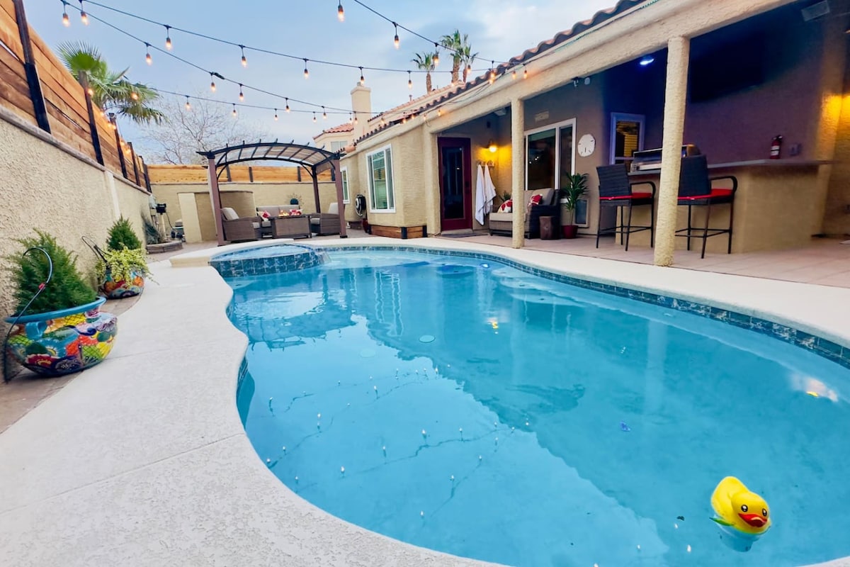 Acogedora casa de 3 habitaciones con piscina y spa, ¡a 9 millas del Strip de Las Vegas!