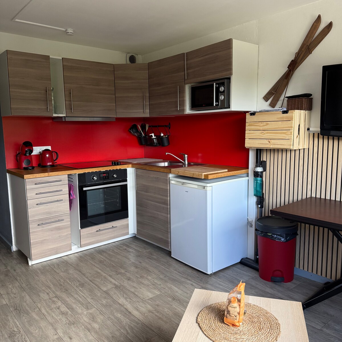 Studio grand balcon, situé au centre même de la station Accès direct aux pistes par local casier à ski. situé au 1er étage (casier rdc) avec : - une entrée et un coin nuit (lits superposés en 90 adultes) - salle d’eau avec grande douche+WC - grand placard + commode - séjour avec clic clac - cuisine entièrement équipée : lave vaisselle, lave linge, grand four, plaques de cuisson, micro-ondes, bouilloire, grand frigo avec congélateur, app raclette / fondue ( inventaire fourni )