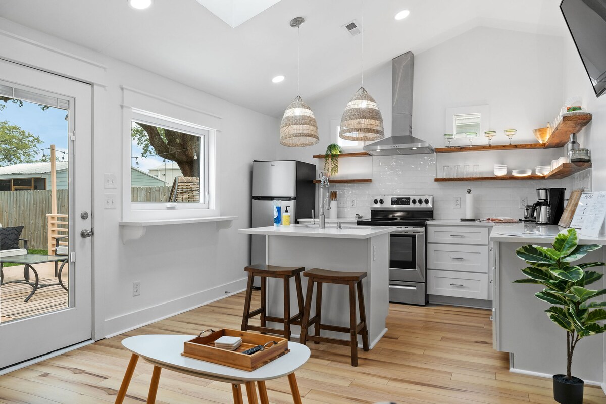 Recently remodeled!! Thanks for looking at my beach cottage! The house is only 4 blocks to the ocean and located right behind the lake where you will find a sidewalk around the lake for easy beach access. There is a farmers market around the lake every Saturday in the summer! This is a great house in an excellent location perfect for families and those that want to bring their fur babies. The backyard is large and fenced in. Fur babies are welcome with a one time $50 pet fee. No cats.