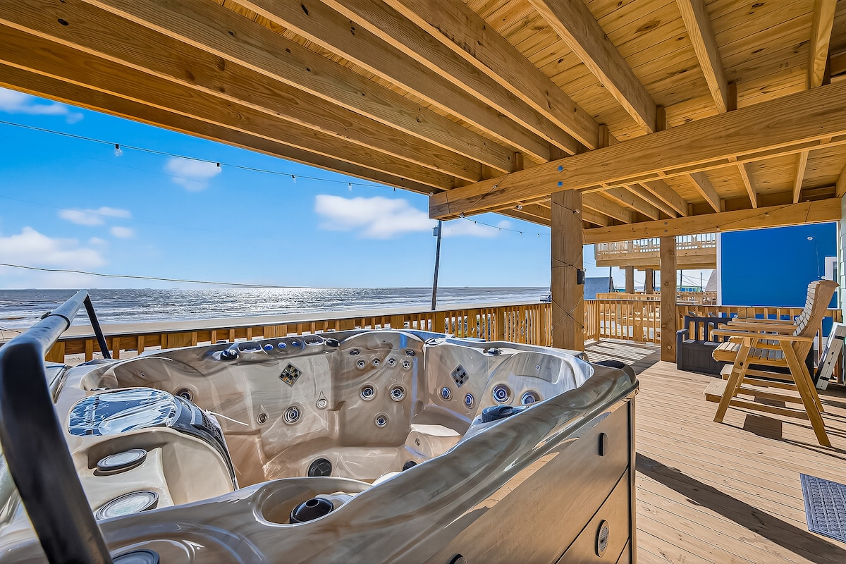 🦄 UNICORN ALERT! This one has it ALL! Take it easy at this unique and tranquil getaway overlooking the Ocean! ✅Brand new build. New house smell and impeccably cleaned! ✅HOT TUB on deck! ✅Pets welcome only $75 up to 2! ✅Only $195 clean fee ✅Day bed and deck chairs ✅Outdoor grilling w/provided propane ✅Bar outside ✅Upper deck with Fire pit w/provided propane ✅Party string lights on Deck! ✅Close to shopping. On beach. ✅Beachfront Bar and Grill one block along beach from this house!