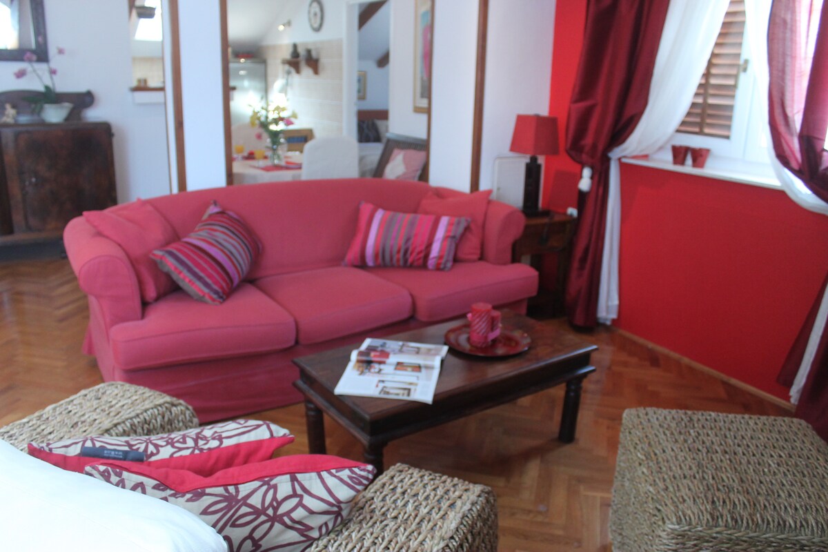 Apartamento frente al mar y primera fila al mar en la casa familiar con restaurante tradicional dálmata con vistas al mar. ¡A solo 4 km del casco antiguo y del centro, a 2 km del puerto y a 2 km de ACI Marine! Tiene un dormitorio con camas dobles y una cama supletoria (sofá) en el salón. El apartamento está muy bien equipado: tiene TV LCD, wifi, aire acondicionado, lavadora, cocina bien equipada y hay varios aparcamientos públicos gratuitos delante.
