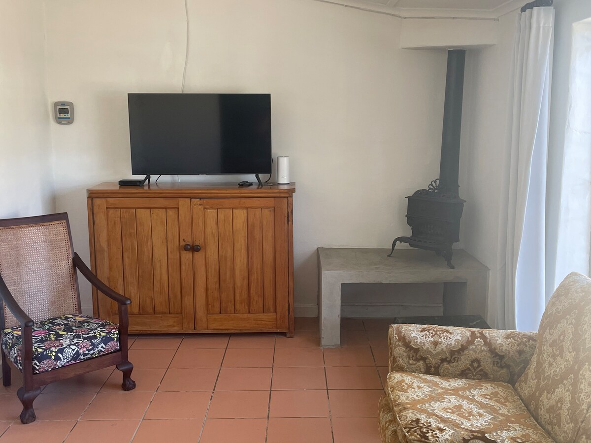 Sleep 3 people in one bedroom with King bed and single bed in living area. Fireplace/braai in kitchenette area which is equipped for self-catering. Cosy living area with smart tv. Bathroom with shower, toilet, basin.