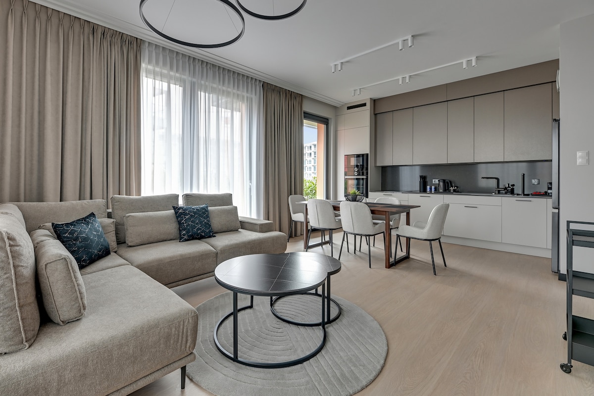 Un apartamento moderno en el corazón de Gdansk con vistas a la historia. Le invitamos a un apartamento con estilo en la prestigiosa inversión Brabank, en el antiguo astillero, en el centro de Gdansk. Este apartamento en el primer piso ofrece comodidad, elegancia y una vista única del Museo de la Segunda Guerra Mundial. ¡El lugar perfecto para tu estancia en Gdansk! Este moderno apartamento es un gran lugar para alojarse en Gdansk para familias, parejas y grupos de amigos. La combinación de estilo, ubicación y vistas hará que tu estancia sea inolvidable.