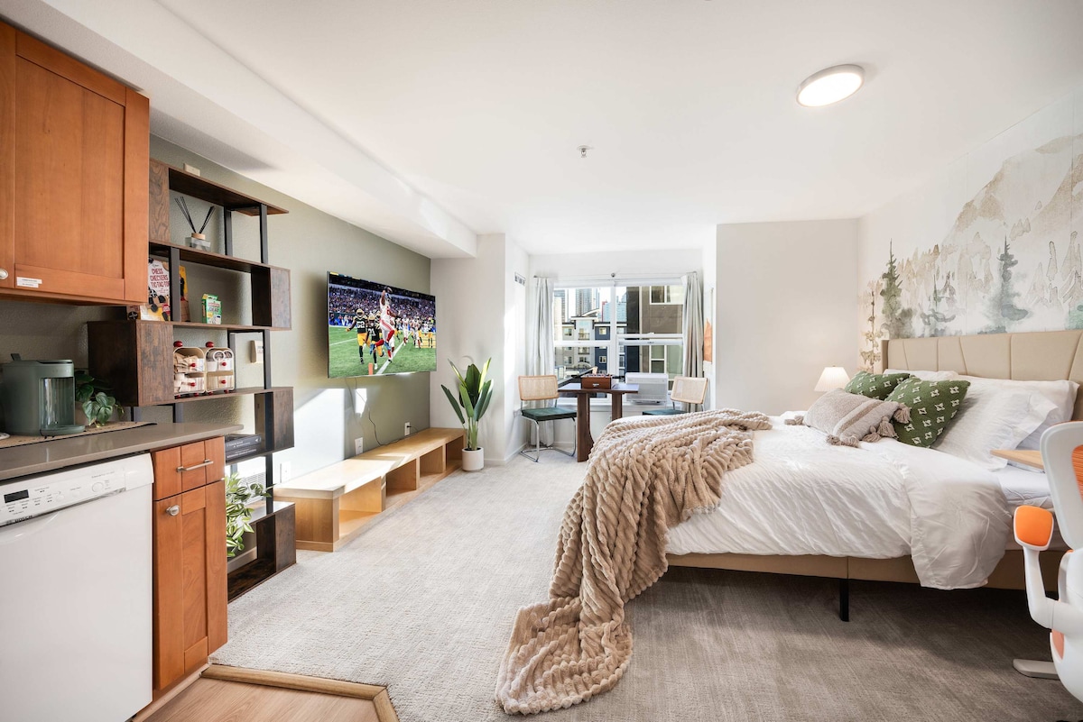 ¡Buscando estar en el corazón de Seattle, este es el lugar perfecto, con vistas al agua del estrecho de Puget, puestas de sol orientadas al oeste y una gran wifi! Está a 10 minutos a pie del mercado de Pike Place y de Space Needle. Observa los veleros y los ferris desde la cama tamaño queen mientras te duermes o disfruta de un bollo en la planta baja en la panadería. Además, ¡hay un nuevo entrenador extraíble, entrada segura y muchos lugares divertidos para visitar en Belltown y sus alrededores!