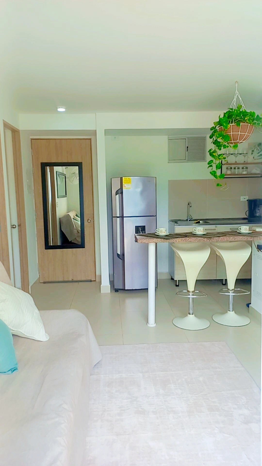 Apartamento entero ubicado en la exclusiva playa de Pozos Colorados. Este espacio es ideal para parejas o familias pequeñas que vienen a descansar y a conocer de la hermosa ciudad de Santa Marta. Durante tu estadía podrás disfrutar de un ambiente tranquilo y de una gran vista que te permitirá contemplar la puesta de sol. El edificio tiene vigilancia las 24 horas, salida privada al mar, parque para niños, salón de juegos y piscina. Ofrecemos servicios adicionales de entretenimiento y turismo.