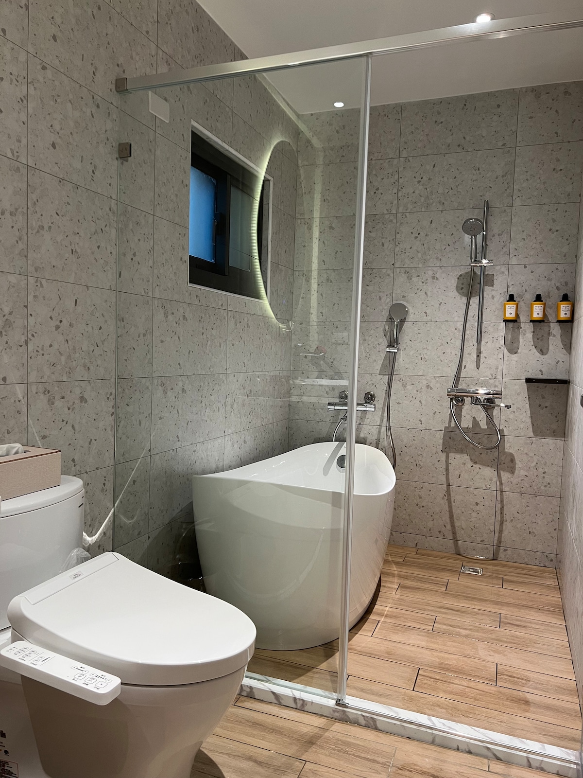 房間配備 -房間坪數約6~10坪 -高級泡茶休息區 -大金變頻空調 360度全方位冷氣 -全身鏡 -化妝鏡 -5*6.2尺德泰雙人床 一張 -43吋LED液晶電視 -免費無線及有線寬頻網路 -免費茶包、礦泉水 -電熱水壺 -Tescom負離子吹風機(女性最愛) -冰箱 -拖鞋 浴室設備 -TOTO衛浴設備(浴缸或淋浴,如需浴缸請另備註,還需視現場狀況安排) -洗髮精,沐浴乳 -毛巾 -基本盥洗用品牙刷,牙膏,刮鬍刀,梳子(響應環保政策,若有需求,可致櫃台購買) 額外服務: -免費和服租借拍照(需提供押金1000元以及證件一張) -提供免費餅乾咖啡做享用 -免費停車場限高175公分,限重1.5噸,採先到先停制,恕無法事先保證,若額滿則需自付停車費喔, -到店按摩服務 -配合健身房,單次入場80元