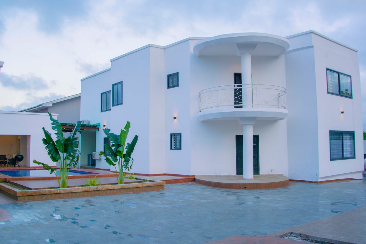 Disfruta del glamour de este alojamiento elegante y exclusivo. Siempre estarás a pocos pasos de la playa. ¡A menos de una hora de Accra! Con grandes ventanales, el océano está a tu puerta; y si lo deseas, puedes disfrutar de la suave brisa marina en la azotea o en el nivel inferior para sumergir los dedos de los pies en la arena. ¡Un entorno verdaderamente sereno y pintoresco con mucha privacidad! ¡Los huéspedes pueden organizar reuniones en el salón de la planta baja!