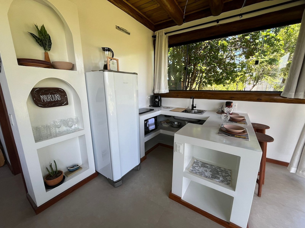 Bangalô Hari Om ¡La experiencia de vivir en el paraíso! Bungalow entero con dormitorio, baño, sala de estar y cocina integrada. Balcón con hamaca y vistas al bosque verde preservado. Estamos a 700 metros, 5 minutos en coche y 10 minutos a pie de la playa de Taipú de Fora, muy cerca de las piscinas naturales. ¡Un lugar en medio de la naturaleza para experimentar momentos de paz, tranquilidad y buena energía! ¡Aquí tu mascota también es muy bienvenida! La vegetación del jardín sufre pequeños cambios a lo largo de las estaciones.