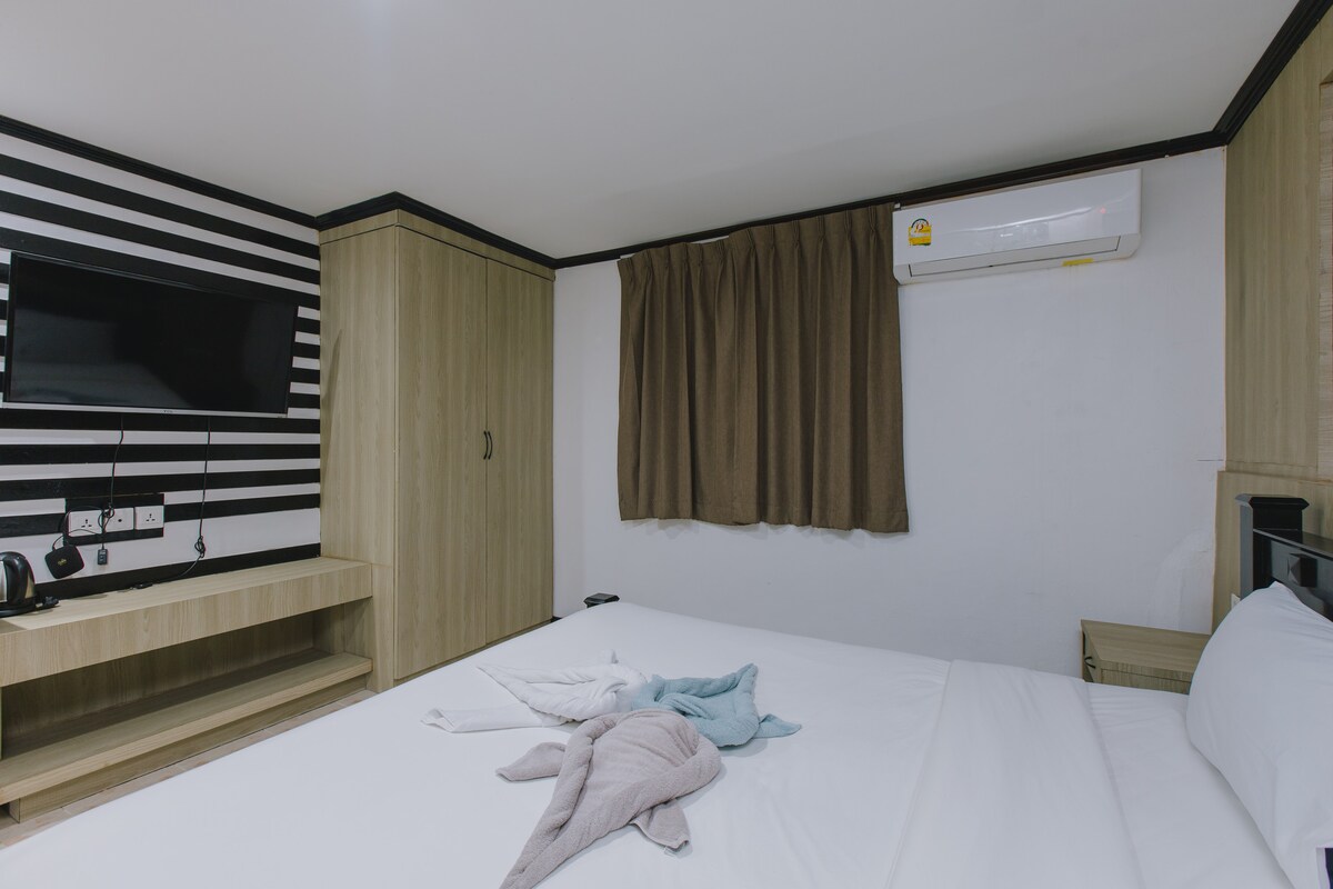 Large room Fully equipped with the facilities , clean in Phuket Town. With a 3.5-foot bed, two bed, TV, refrigerator (2 bottles of water free) WiFi and balcony seating corner. Accommodation with soap, shampoo and towels.