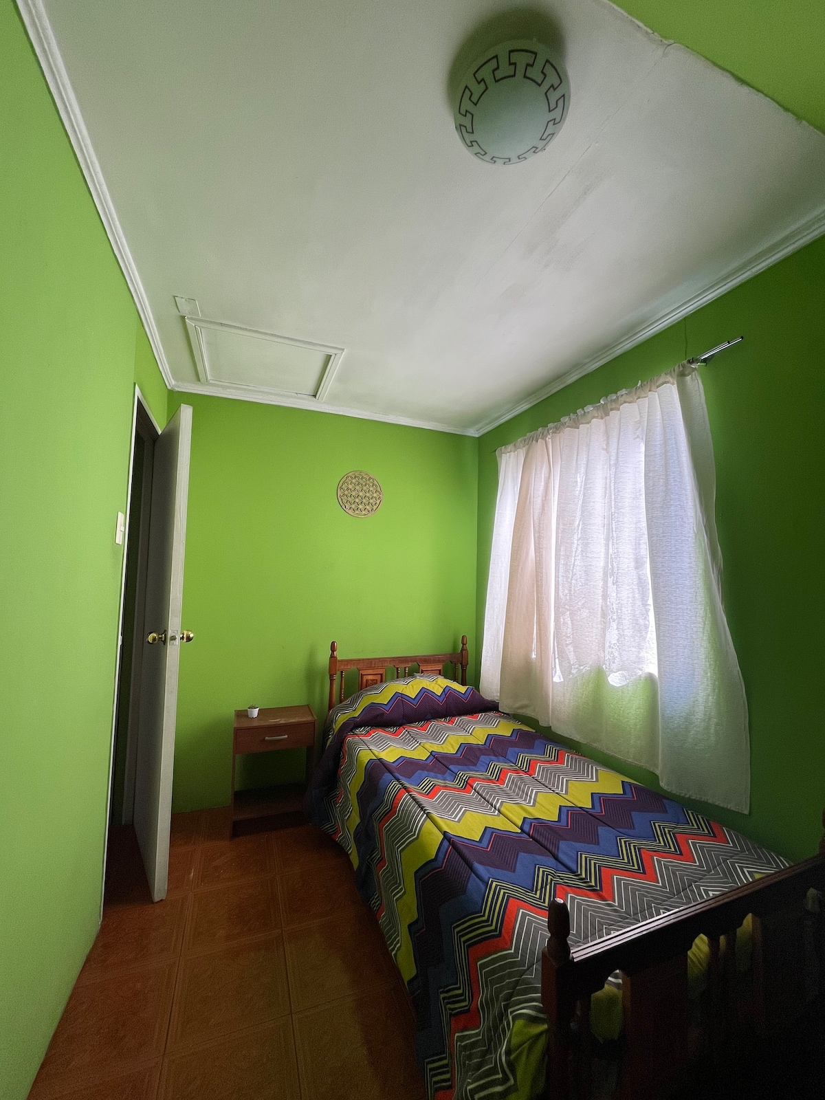 Casa completa y céntrica en Talca, a 2 cuadras de la Alameda y 3 de la Diagonal. Ideal para 4 huéspedes: 2 dormitorios (matrimonial y dos individuales), 1 baño, living-comedor y cocina exclusiva equipada con refrigerador y otros. Wi-Fi y TV en dormitorio principal. Incluye ropa de cama y toallas. Estacionamiento privado dentro de la propiedad. Pet-friendly. No se permite fumar en interiores.