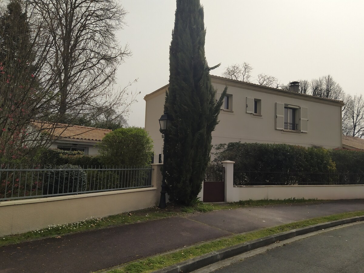 Appréciez le confort et le calme de notre annexe, idéalement située à côté de Bordeaux. (logement indépendant situé dans notre jardin, climatisé, cuisine équipée, lit Quenn size, wifi, fibre, Netflix...) Tous commerces utiles à 5min à pied. Très accessible (15min de l'aéroport, 3min de la rocade, 15min de Bordeaux, tram ligne C à 3min en voiture, bus à 50m..). Idéal pour visiter Bordeaux, son prestigieux vignoble en Pessac-Léognan, et la région bordelaise. Piscine ouverte de mai à septembre.