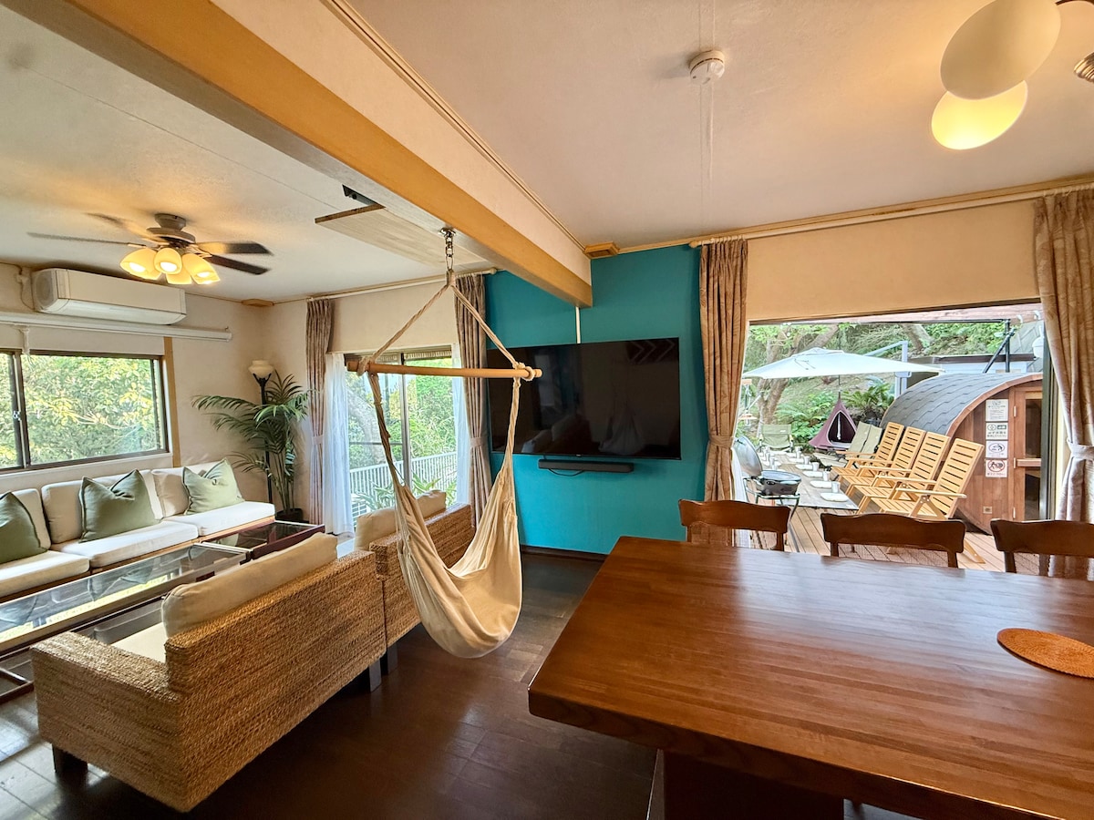 Se trata de un alquiler de 1 villa con un corralito para perros en Kiyokawa Village, el único pueblo de Kanagawa.El río Koayu fluye justo al lado de la casa, y se puede escuchar el agradable sonido del río durante su estancia. Desde la espaciosa terraza conectada a la sala de estar de la villa totalmente renovada, el césped y el campo se extienden frente a ti, creando un espacio agradable. Lejos del ajetreo y el bullicio de la ciudad, es un gran lugar para disfrutar de una sauna y una barbacoa mientras contemplas las estrellas en una silla infinita en la naturaleza.La tienda sauna tiene una cubierta para la lluvia en la chimenea, por lo que puede disfrutar de la sauna incluso si llueve un poco.Puedes disfrutar de la sauna privada con Satoyama Aroma Lowry tantas veces como quieras durante tu estancia. La terraza tiene un toldo retráctil, por lo que puedes disfrutar de una barbacoa en la terraza incluso con un poco de lluvia. Te recomendamos que pases la noche y el día relajándote en la sauna y haciendo una barbacoa. La barbacoa, la sauna, el horno para pizzas y el fogón que antes eran de pago ahora son gratuitos.La leña también es gratuita. Hay muchos lugares populares que aparecen frecuentemente en la televisión cerca, como la presa Miyagase, aguas termales, la fábrica de sartenes Ogino, el rancho Hattori, cafeterías y aventuras en los árboles.