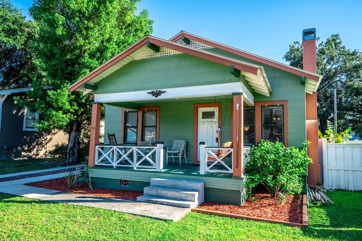 Bienvenido a tu hogar lejos de casa en este encantador bungaló histórico de 125 años en el corazón del distrito histórico de Ybor City de Tampa. Cada detalle ha sido cuidadosamente pensado para garantizar que tus vacaciones sean perfectas y relajantes. Los tres dormitorios tienen camas tamaño queen. Se le dio un giro divertido y moderno al diseño y la decoración. A poca distancia a pie de algunos de los mejores restaurantes de la zona, ¡toma algo en un bar de la azotea vecino! Esta casa está situada en el corazón de Tampa, ¡cerca de todo!