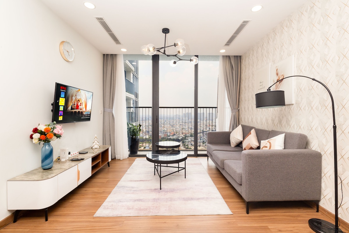 Observa y siente la ciudad en sí. La mejor vista incluye 2 edificios emblemáticos de Saigón (la torre Bitexco y el Landmark 81). - Vista panorámica de la ciudad. - Atrapa múltiples fuegos artificiales y puestas de sol. - Piano incluido, TV de 75 pulgadas para películas y deportes. - Cocina totalmente funcional con el mercado Nam An abajo, perfecta para grupos o parejas que quieran cocinar por la noche. - Gran lugar de trabajo de día y de noche. - Acceso a la piscina (planta G) y al gimnasio (segunda planta). - A 5 minutos del distrito 1 (centro de la ciudad). - A 5 minutos de la zona de Thao Dien.